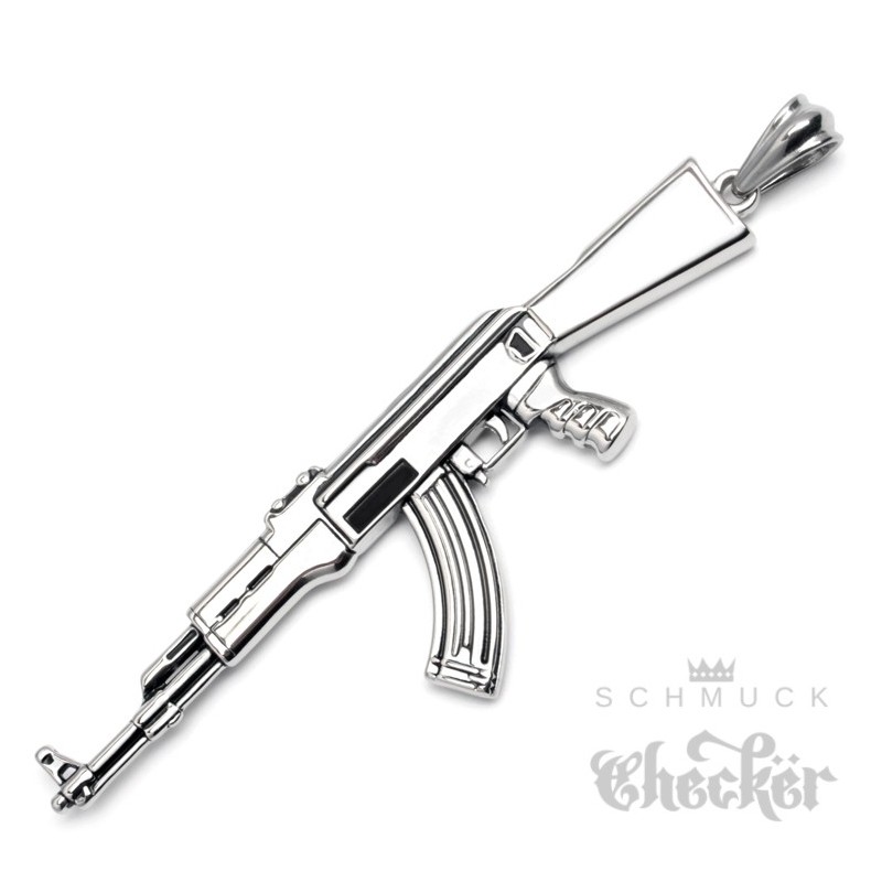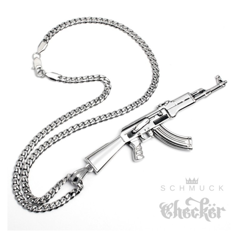 XL Edelstahl Anhänger Gewehr Kalaschnikow AK-47 + 60cm Panzerkette