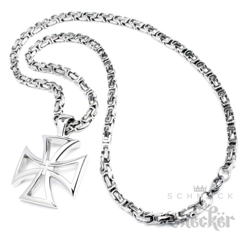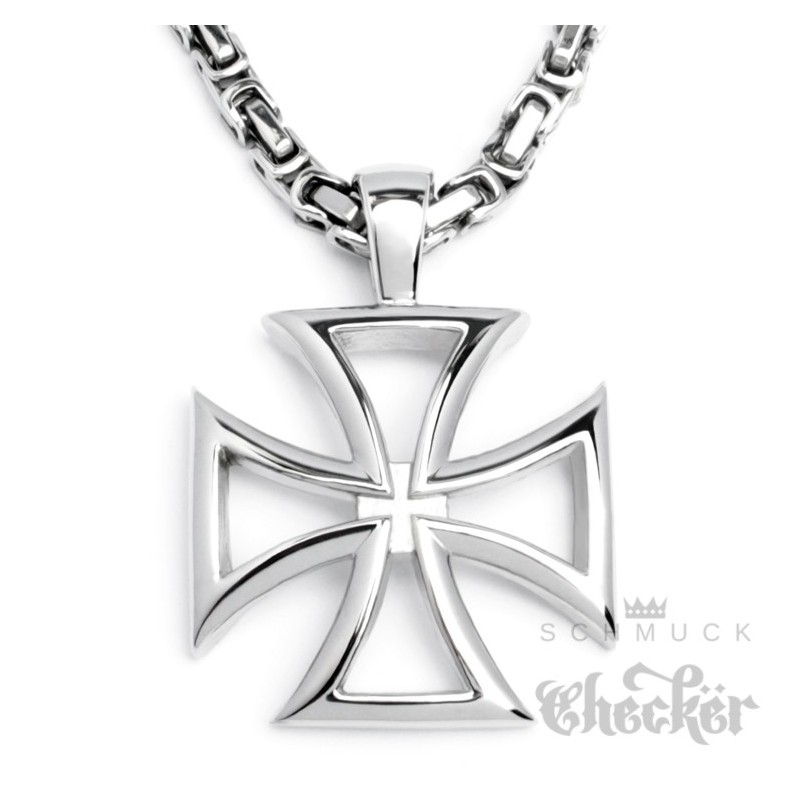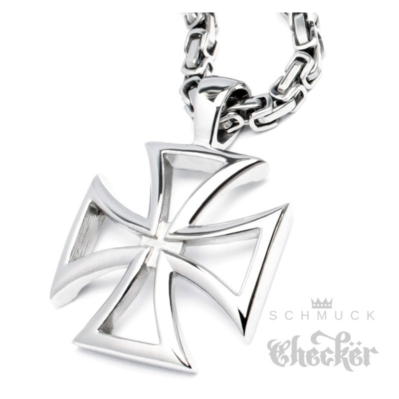 XL Edelstahl Herren Anhänger Eisernes Kreuz silber Ritterkreuz Königskette Biker