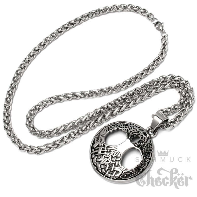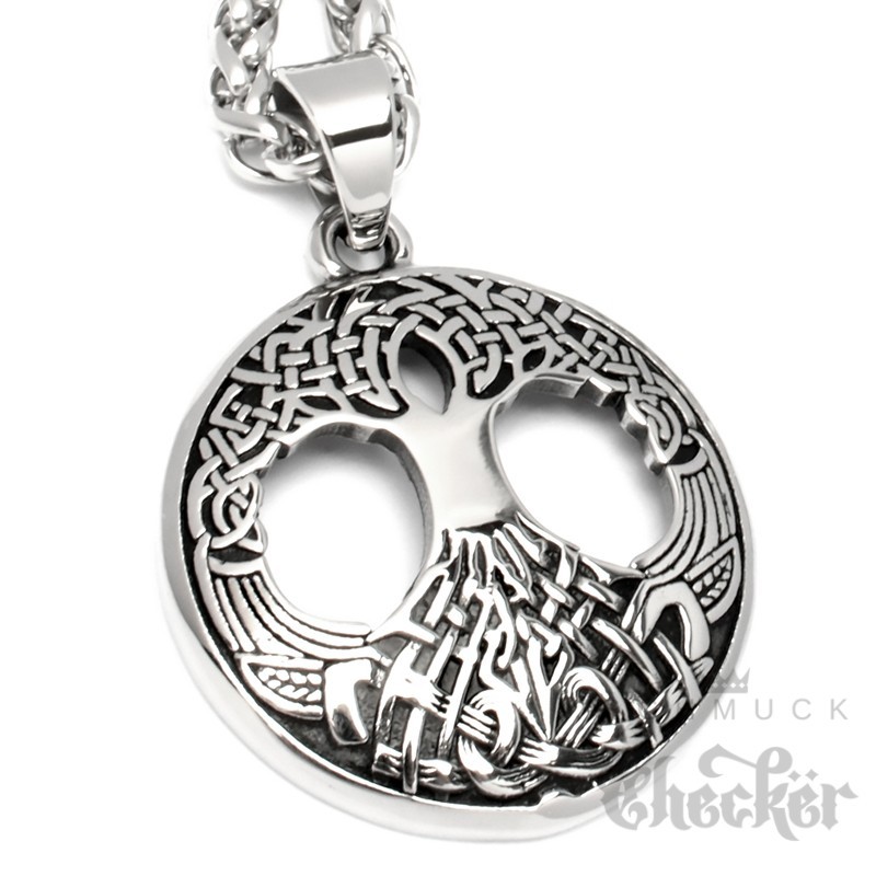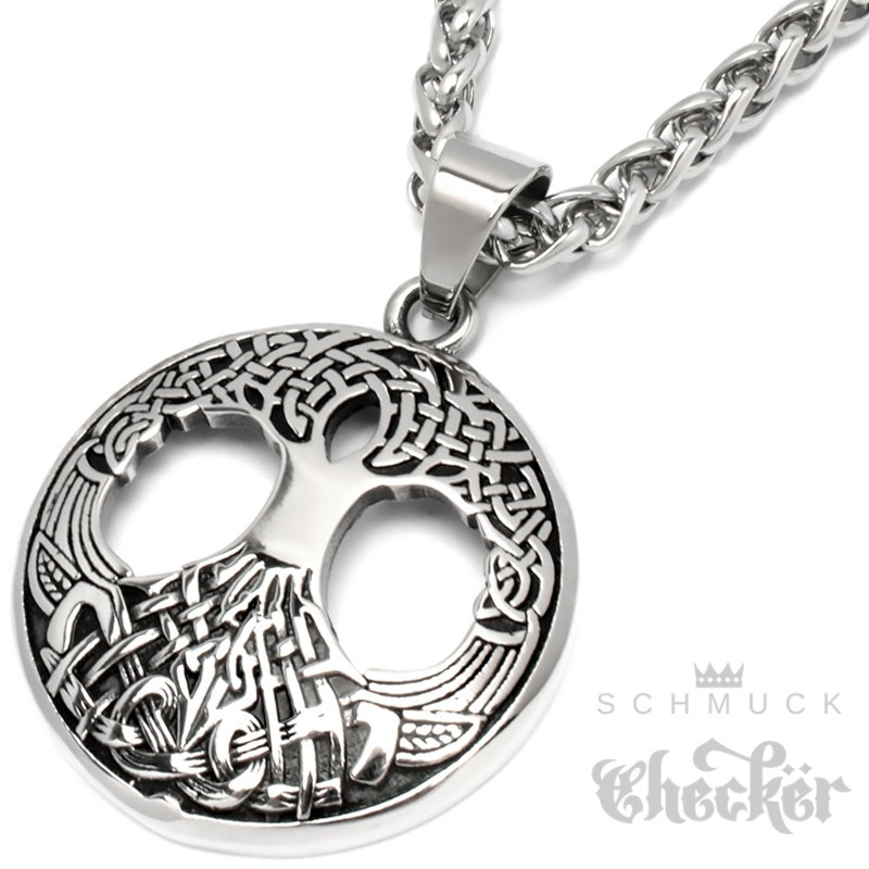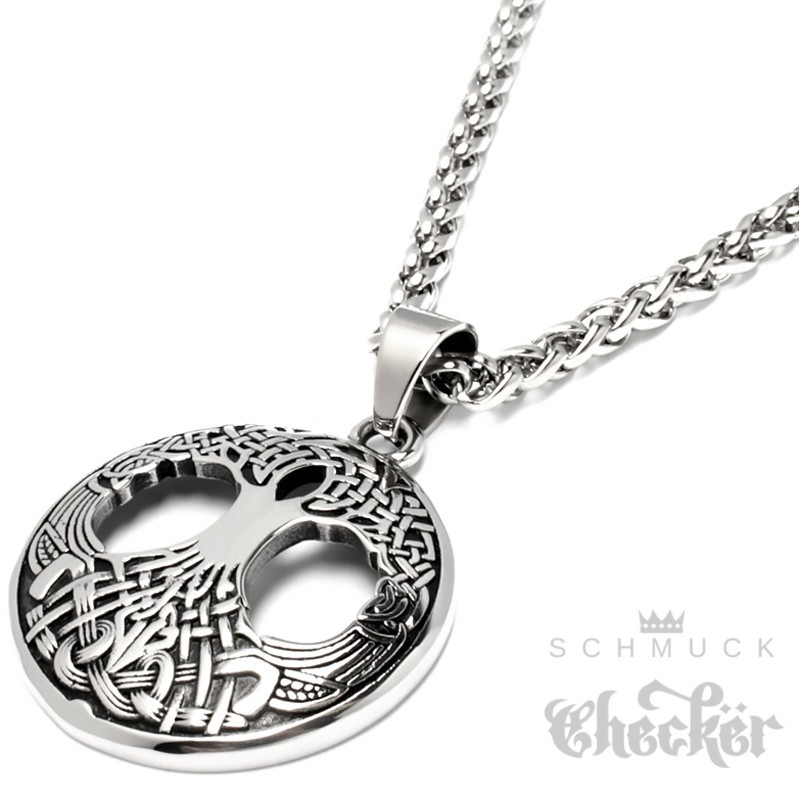 Yggdrasil Anhänger aus Edelstahl verzierter Welten-Baum Germanen Wikinger Halskette
