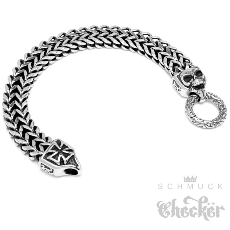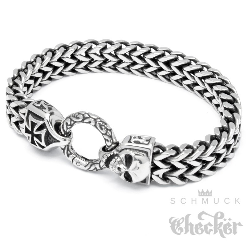 Bikerarmband mit Skull und Eisernem Kreuz aus 316L Edelstahl Totenkopf Armkette