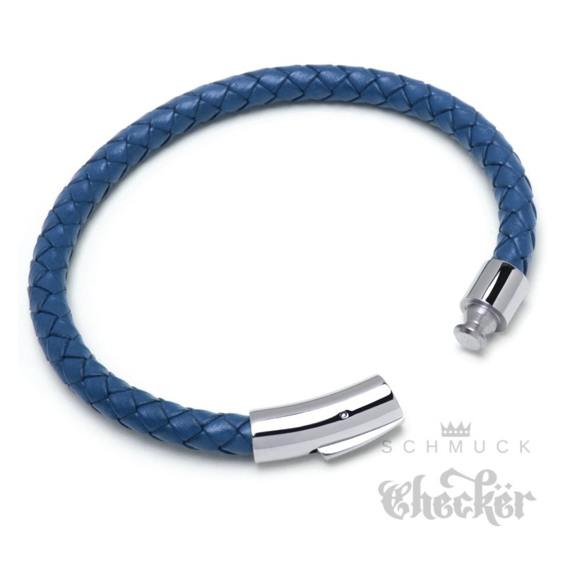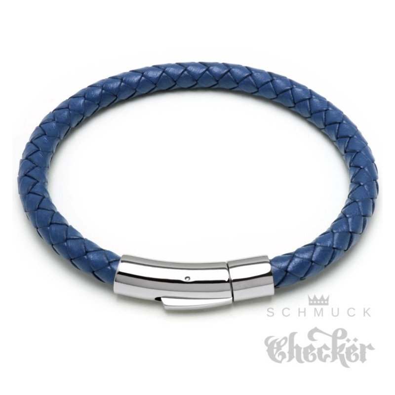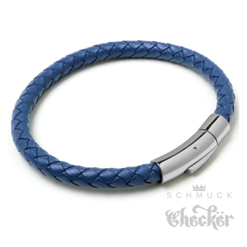 Blaues Armband aus echtem Leder mit Edelstahl Verschluss geflochten 6mmØ