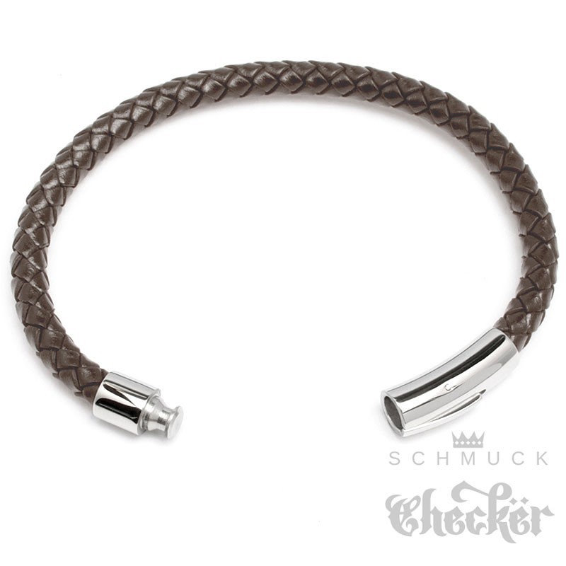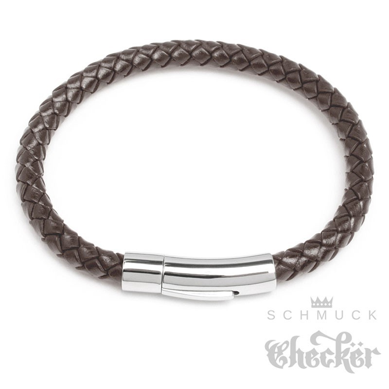 Braunes Lederarmband 6mm Ø geflochtenes Herren-Armband silber Edelstahl Schließe