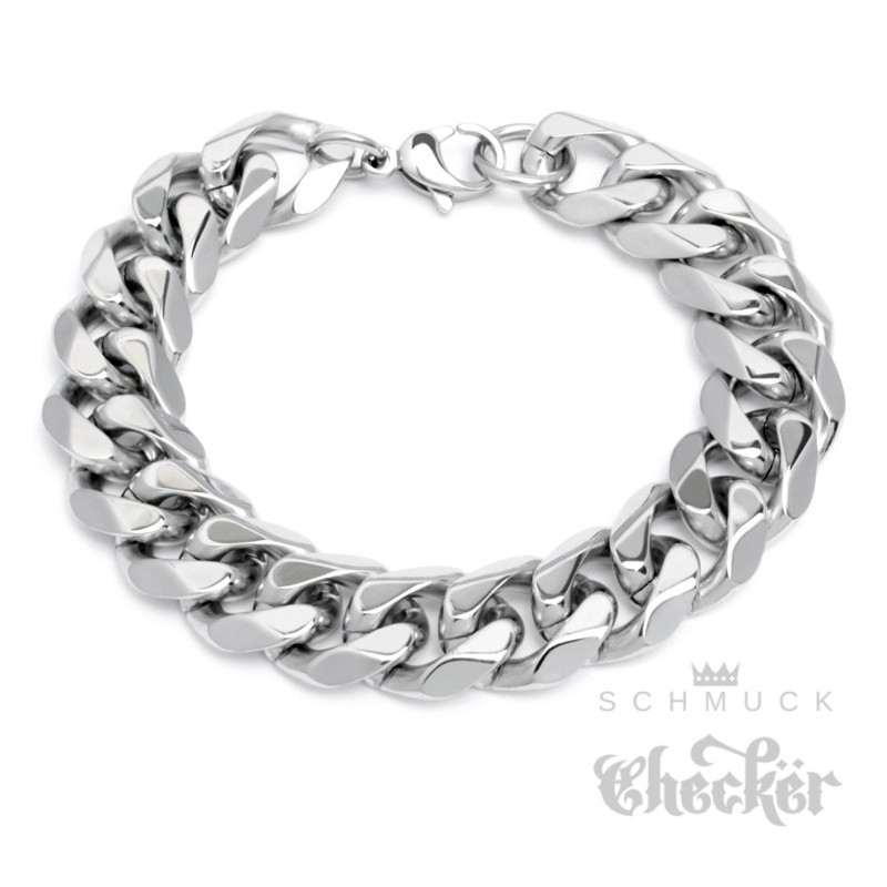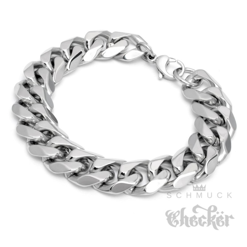 Breites XL Edelstahl Herren Armband Panzerarmband Panzerkette silber 22cm Biker