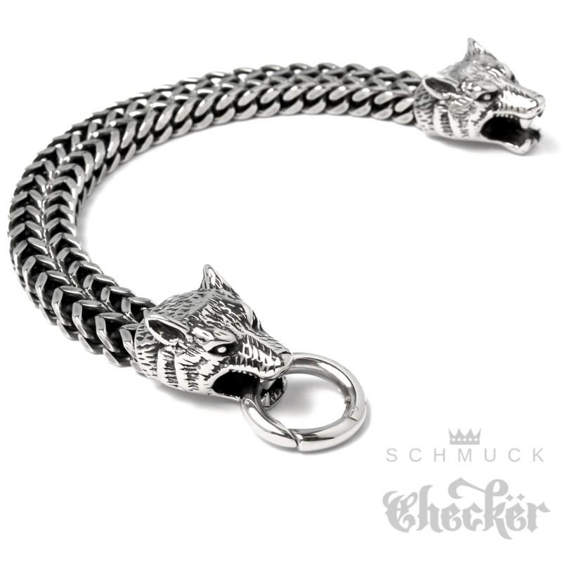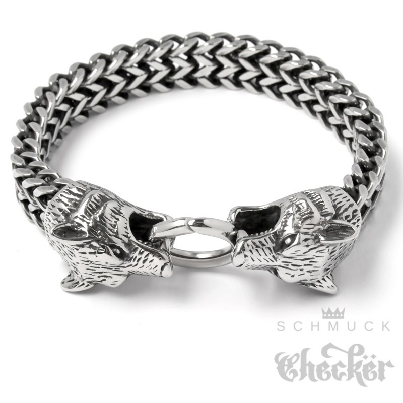 Cooles Wolf-Armband mit Ringverschluss Edelstahl silber Bikerschmuck Herren Armkette