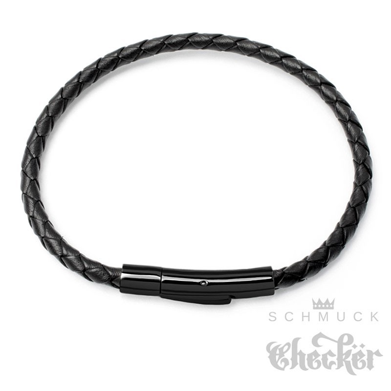 Dünnes Lederarmband schwarz mit Edelstahl-Verschluss hochwertiges Herren-Armband