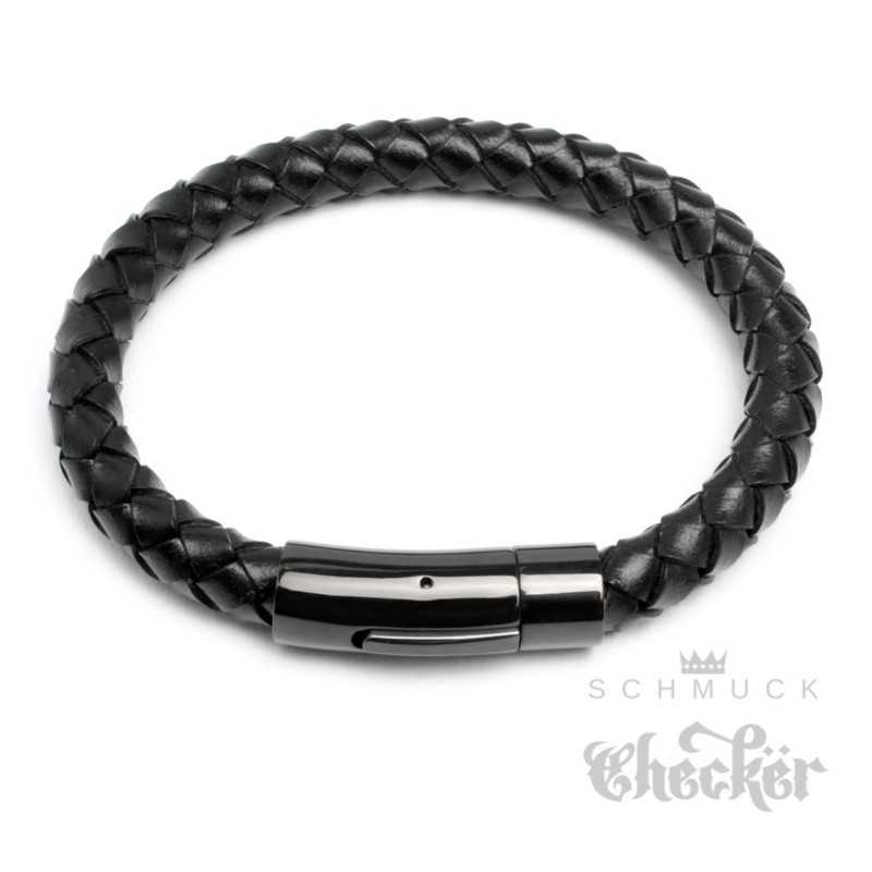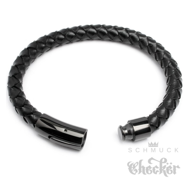 Schwarzes Lederarmband 8mm Ø geflochtenes Herren-Armband 316L Edelstahl Verschluss