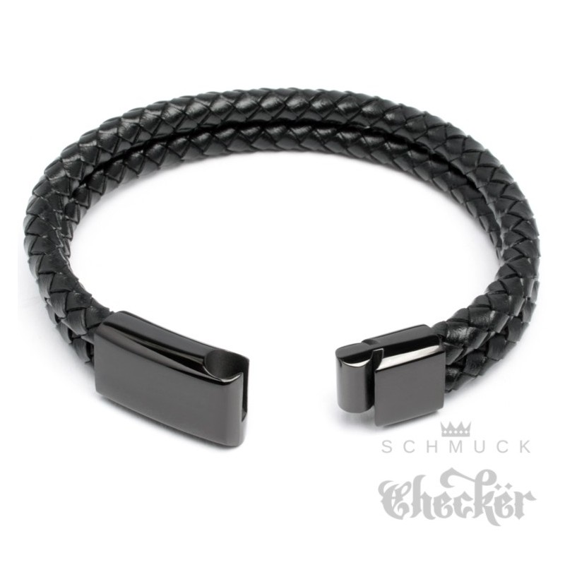 Doppeltes Lederarmband schwarz geflochten Herren-Armband 316L Edelstahl Verschluss