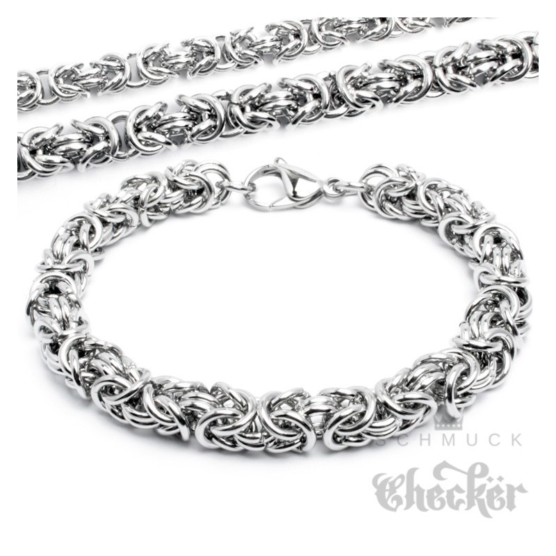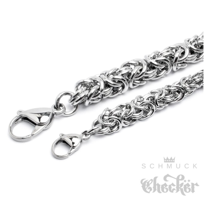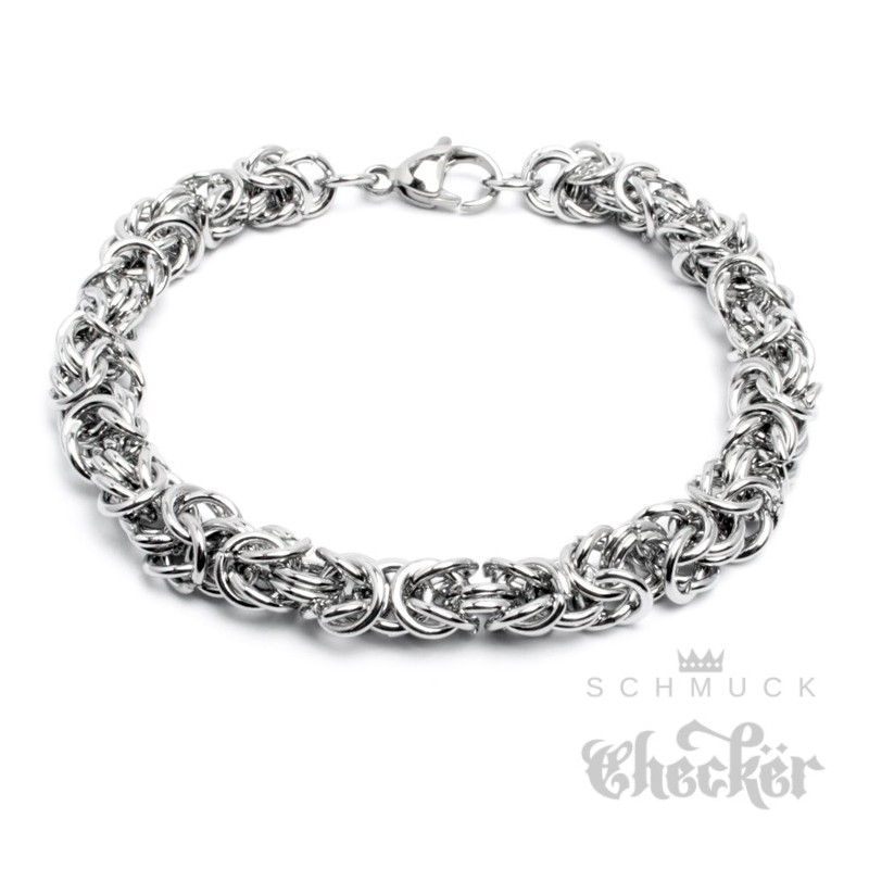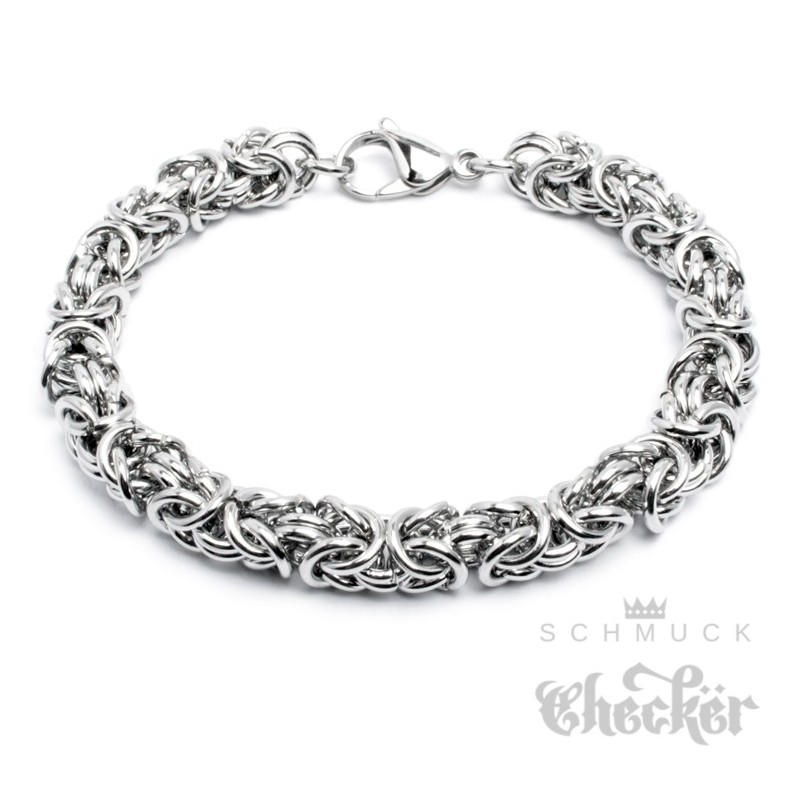 Klassisches Königsarmband aus silbernem Edelstahl. Die Königskette besteht aus einer Vielzahl kleiner Ringe, wie sie schon vor langer Zeit hergestellt wurde. Die enge Verflechtung der Ringe macht aus einem einfachen Lichteinfall auf das Armband eine Vielzahl an Reflexionen, was man schon fast als funkeln bezeichnen kann. Die Armkette ist ein schönes Geschenk für Herren und Damen.