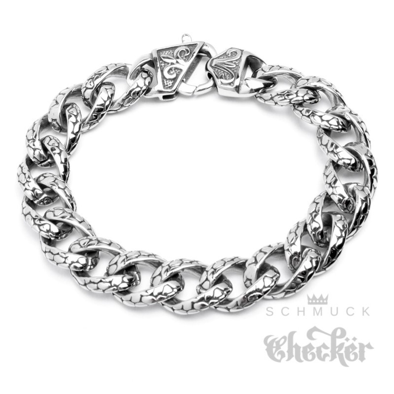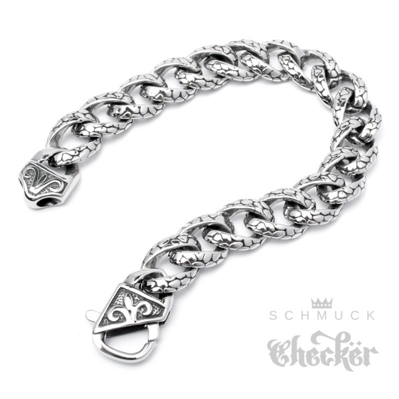 Edelstahl Herren Armband Panzerkette verziert Reptil Muster 21,5cm Biker Gothic