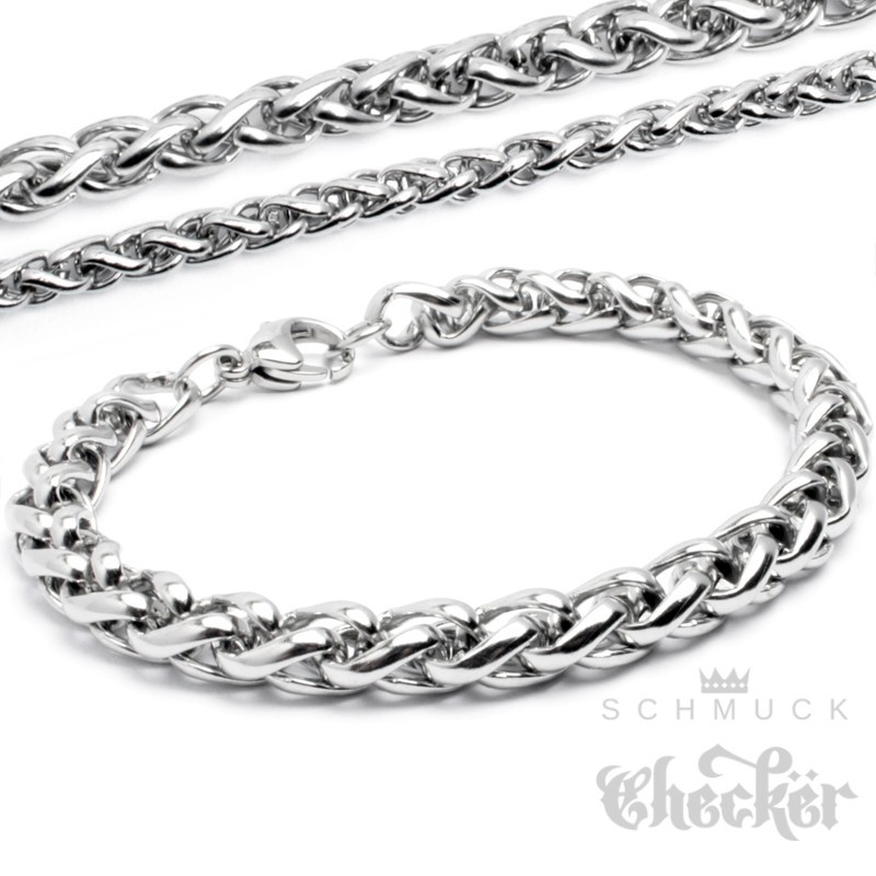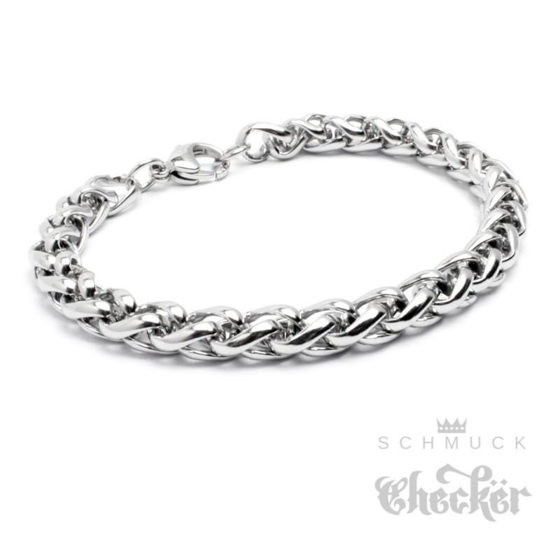 Edelstahl Männer Herren Armband Zopfkette besondere Form geflochten silber