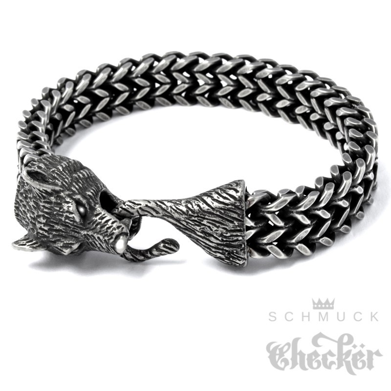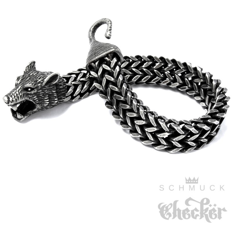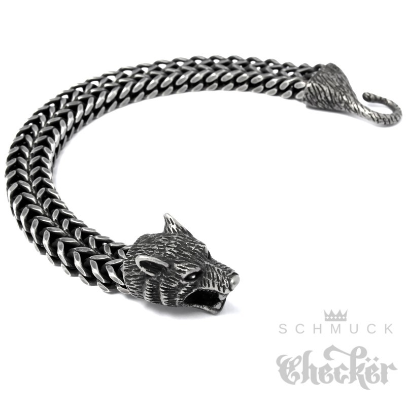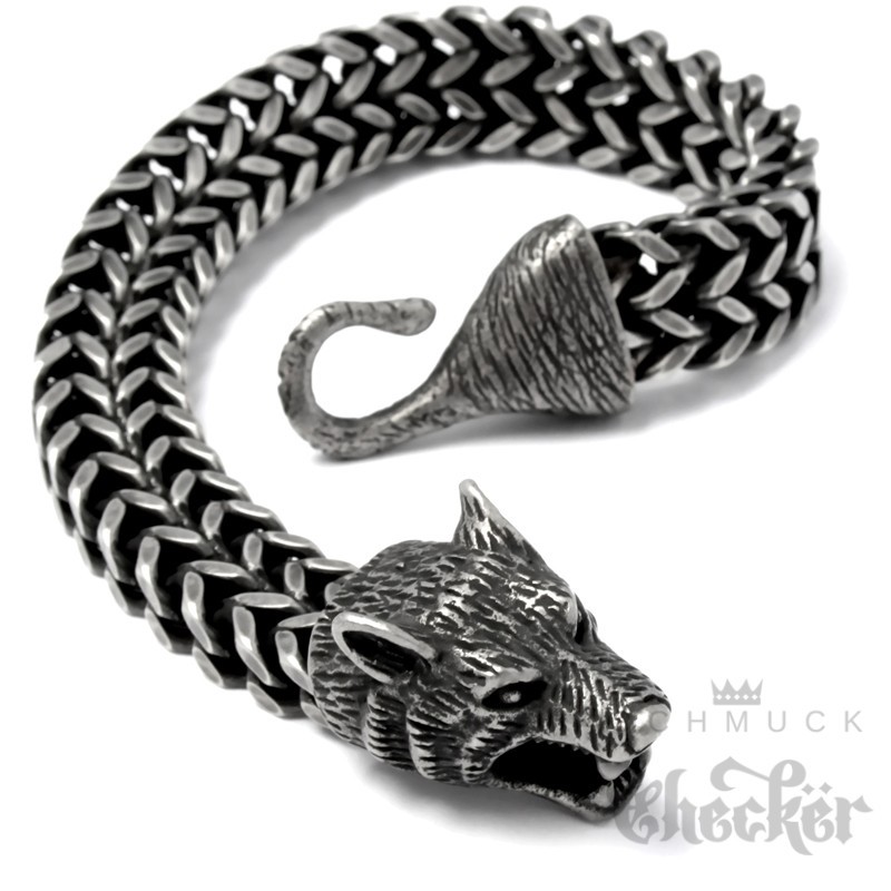 Grauer Wolf Herren Armband aus Edelstahl Wikinger Armkette Biker Schmuck Geschenk