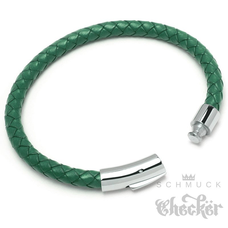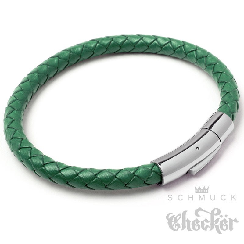 Grünes Armband aus echtem Leder mit Edelstahl Verschluss geflochten 6mmØ
