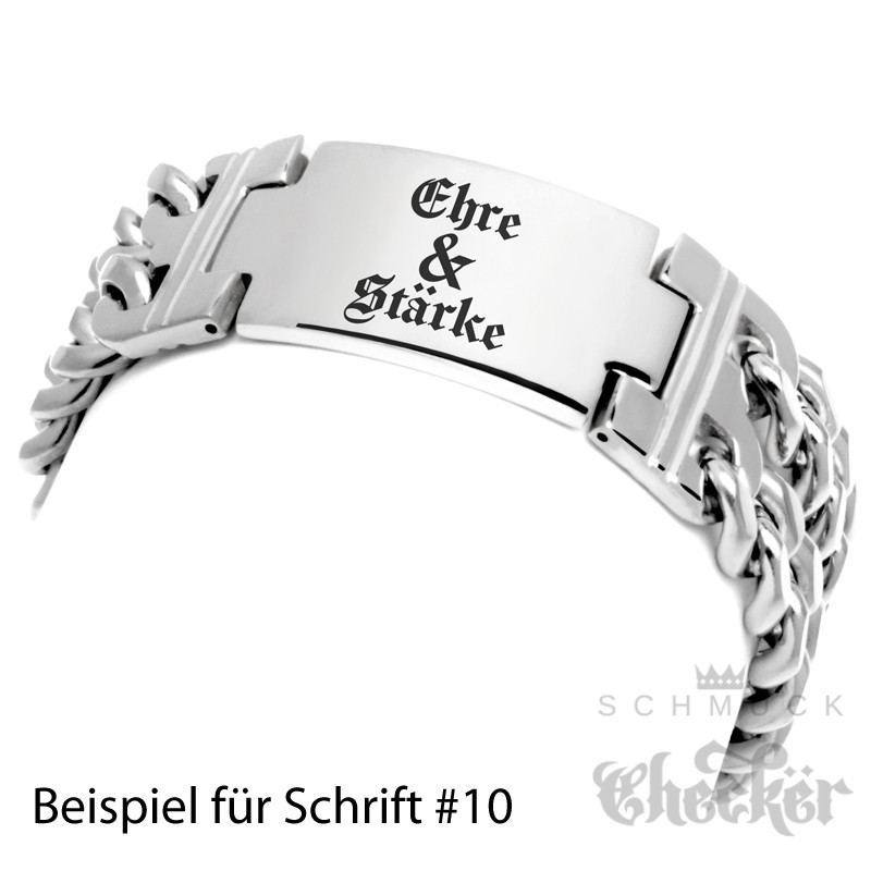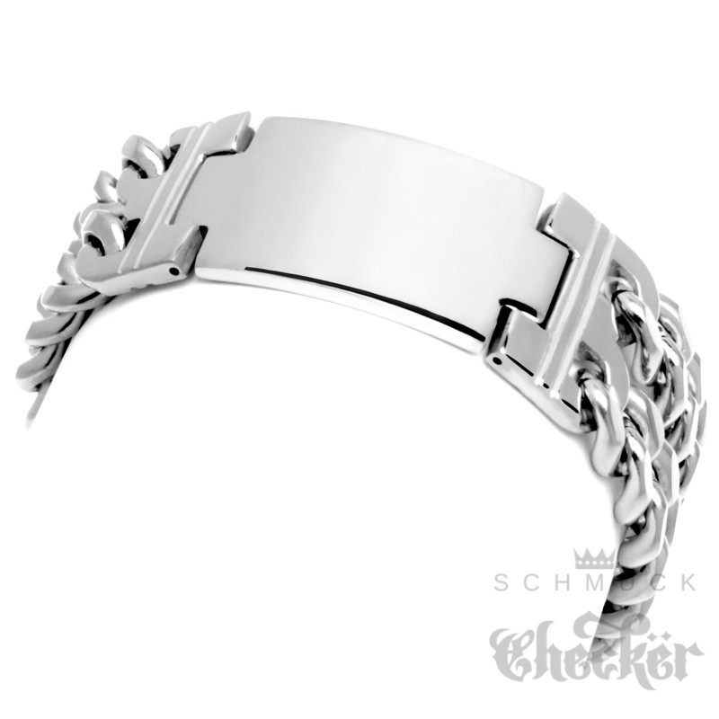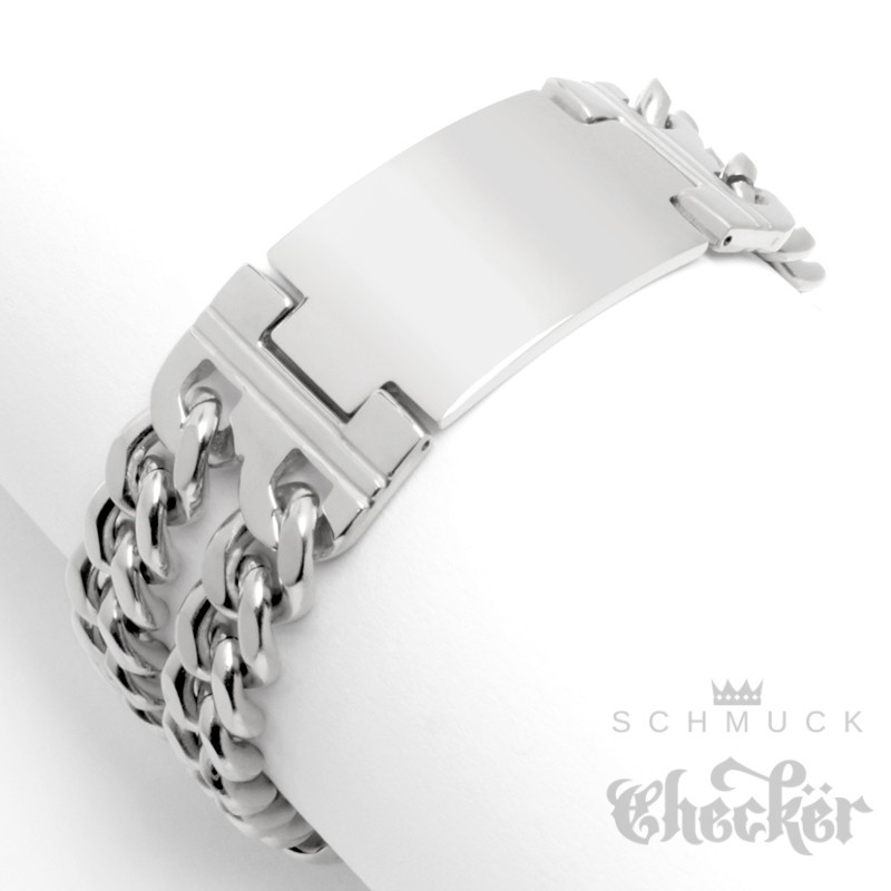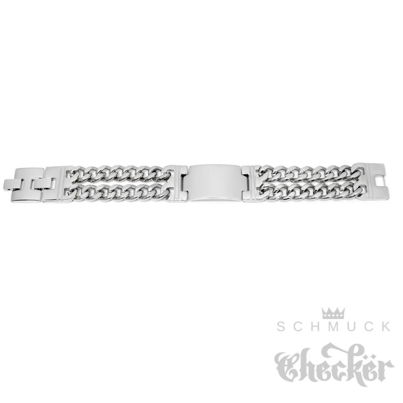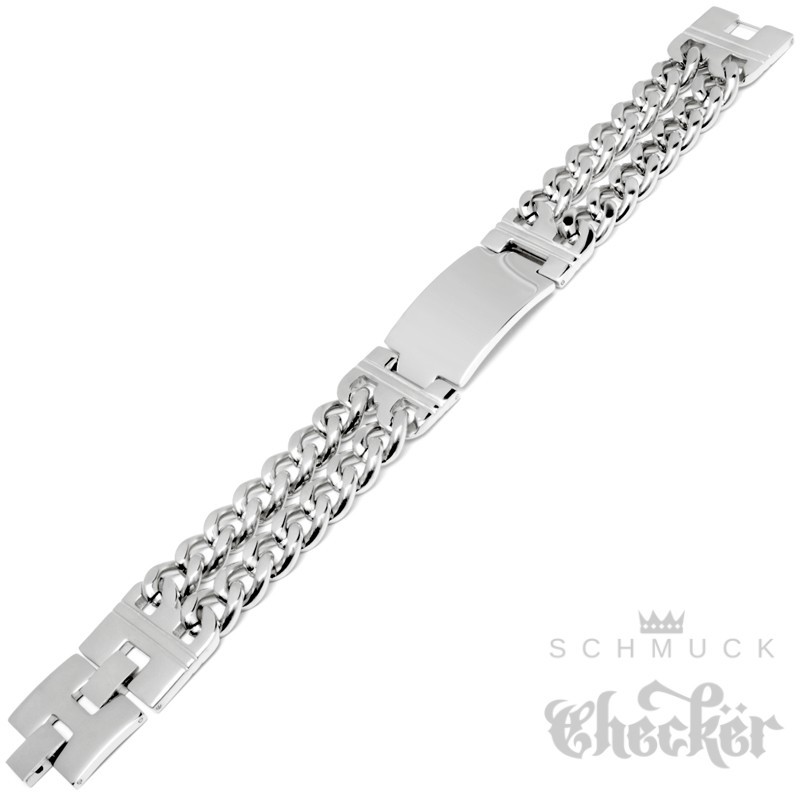 - Form: Doppeltes Panzerarmband mit Schild