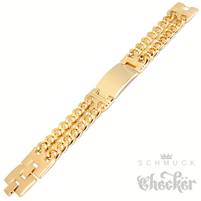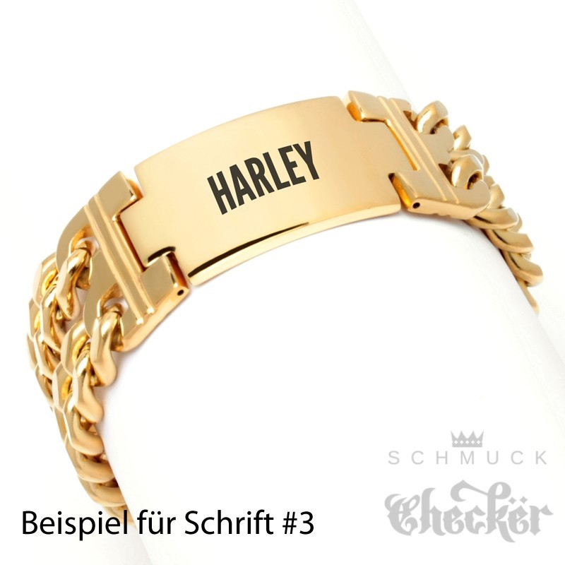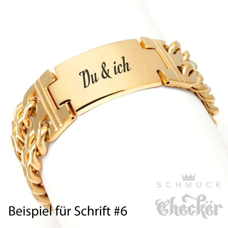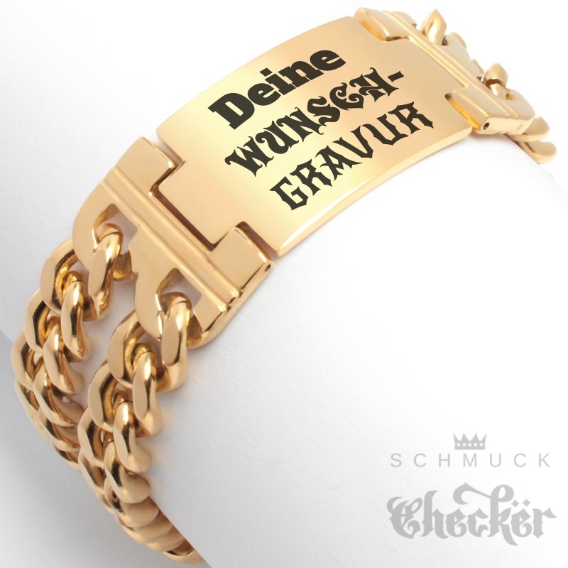 Herren Armband mit Wunsch-Gravur breites Edelstahl-Armband vergoldet Männer Geschenk