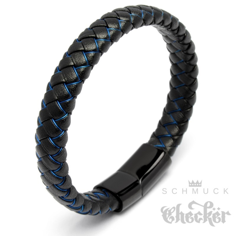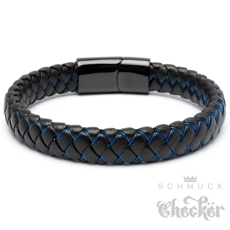 Lederarmband für Herren schwarz blau geflochten Edelstahlverschluss hochwertig