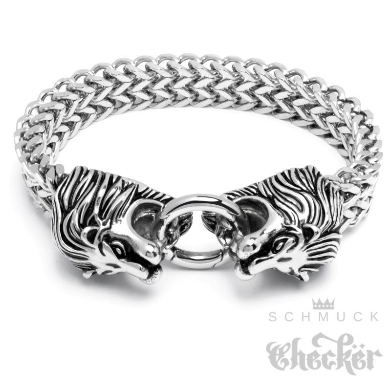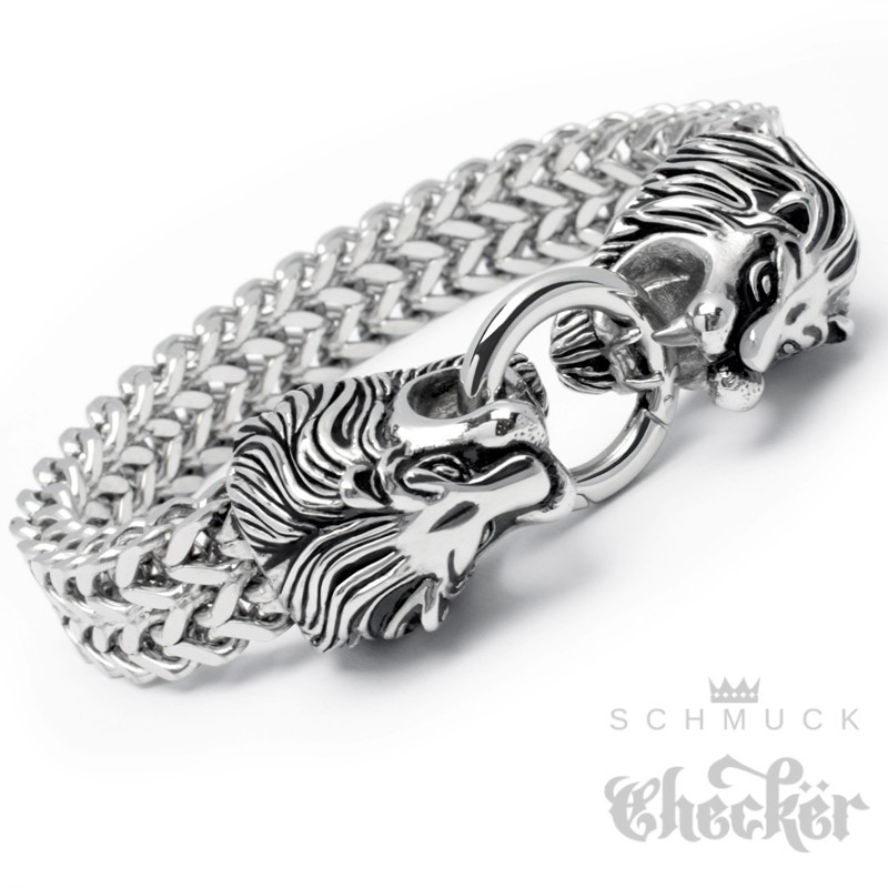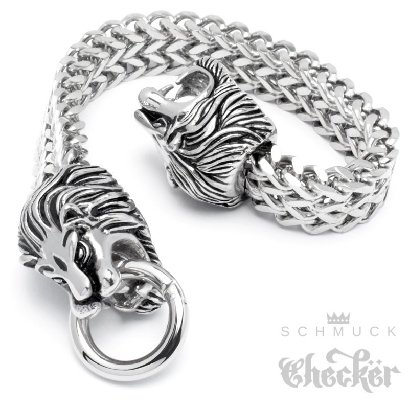 Löwen-Armband mit Ringverschluss Edelstahl Bikerschmuck Armkette Herren Geschenk
