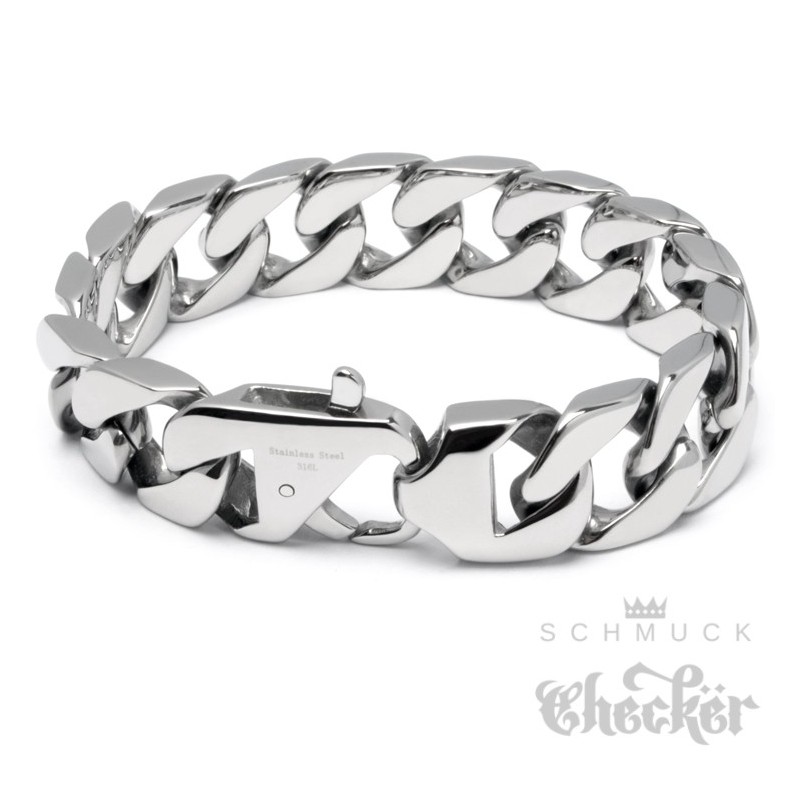 Massives Panzerarmband aus poliertem Edelstahl. Am Handgelenk macht dieses Schmuckstück echt was her. Dieses hochwertige Herrenarmband ist mit 1,5cm Breite sehr maskulin. Da es aus 316L Edelstahl gefertigt ist, ist es sehr hart, kaum anfällig für Kratzer und quasi unzerstörbar. Einmal gekauft ist das Armband ein Begleiter fürs ganze Leben. Am besten gleich hier zum günstigen Preis bestellen.