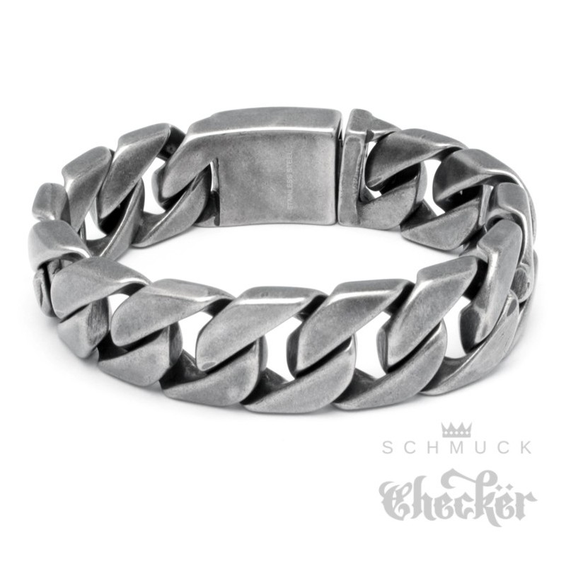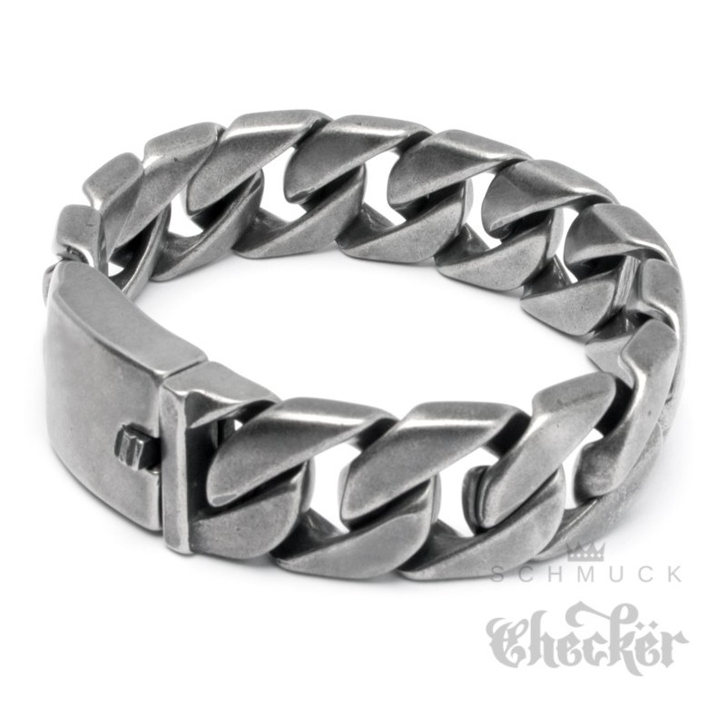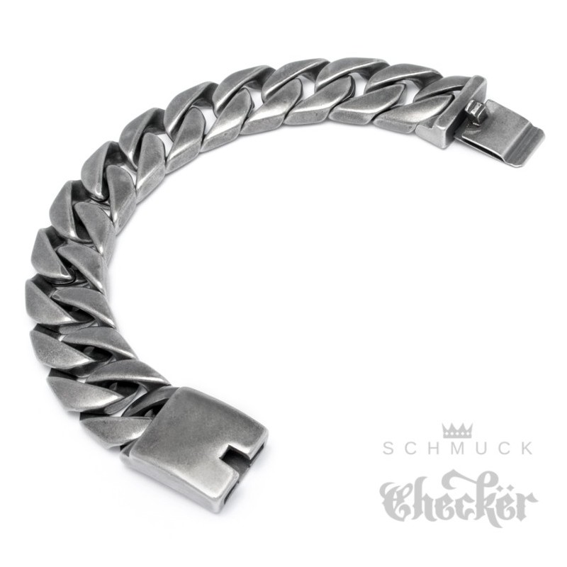 Massives XL Edelstahl Herren Armband Panzerkette dunkel grau schwer retro Stahl