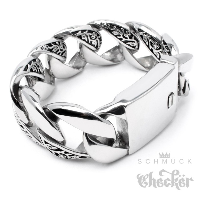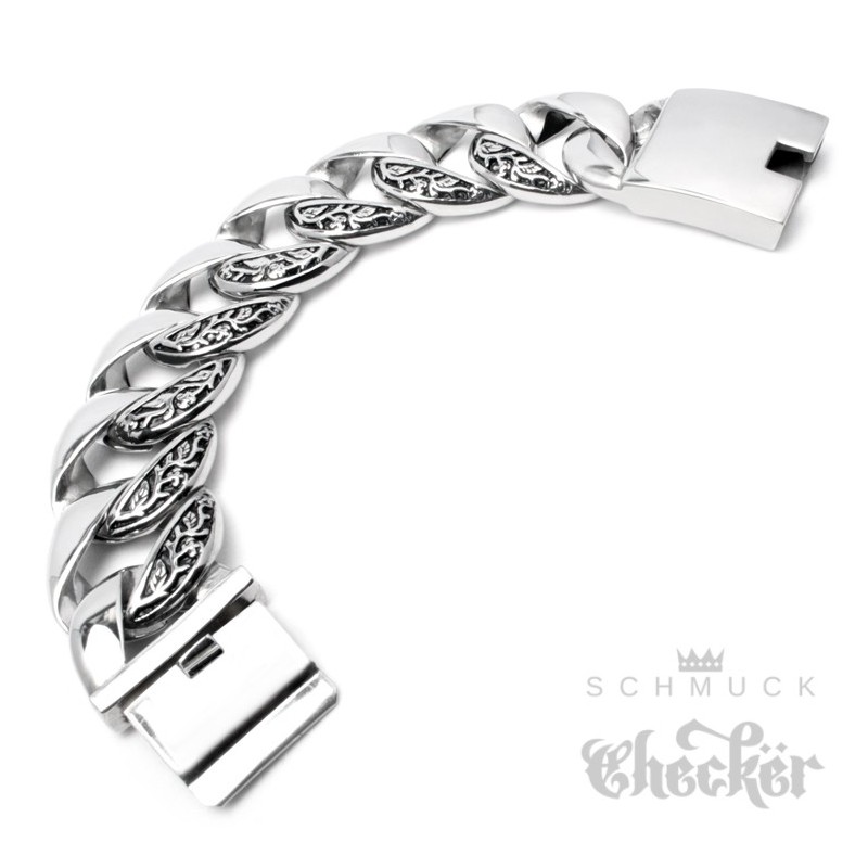 Massives XXL Edelstahl Herren Armband Panzerkette schwer dick Muster Biker