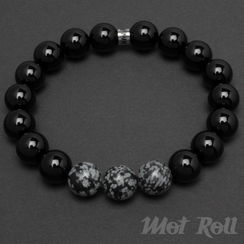 Mot Roll Perlen Armband Edelstein schwarz Achat Jaspis Onyx Herren Männer Menbeads