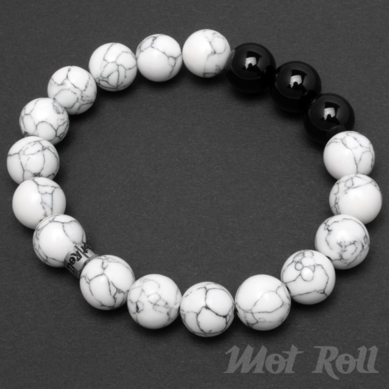 Mot Roll Perlen Armband Edelstein weiß schwarz Herren Männer Menbeads Bead