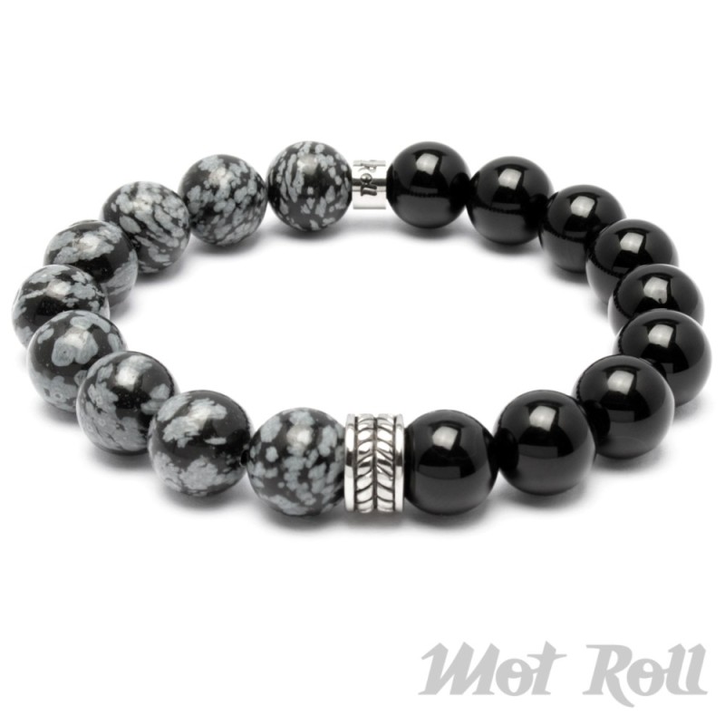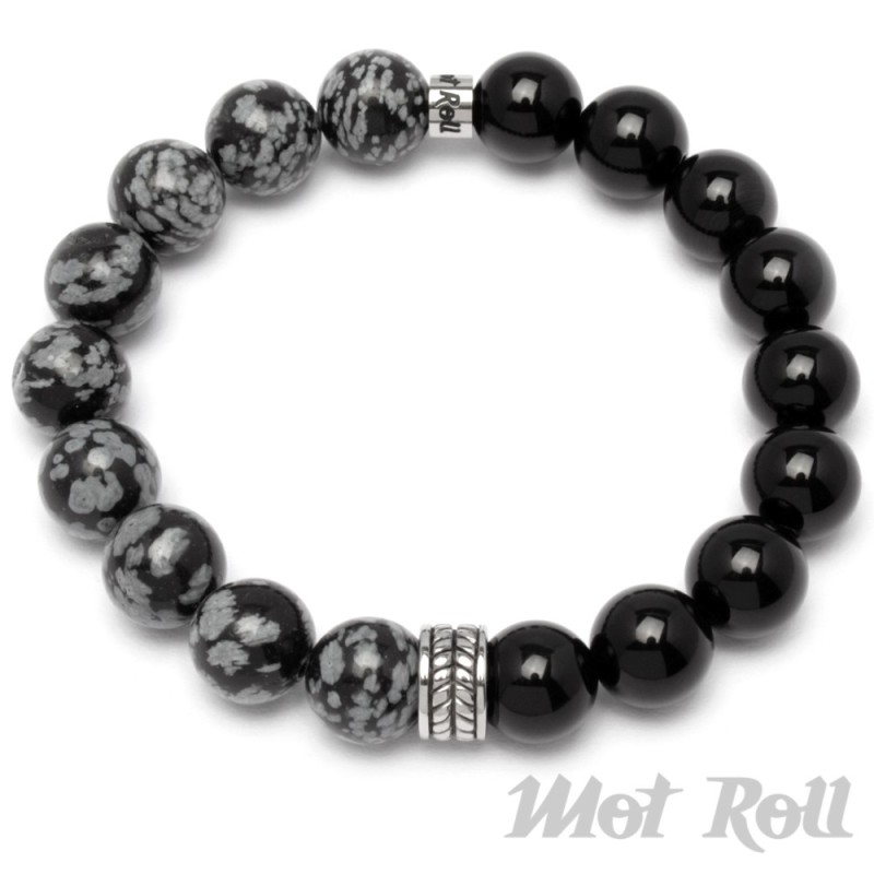 Mot Roll Perlen-Armband Bicolor aus Halbedelsteinen schwarz grau Edelstahl Menbeads