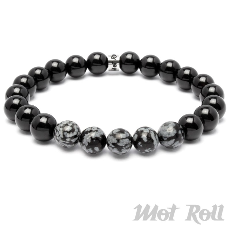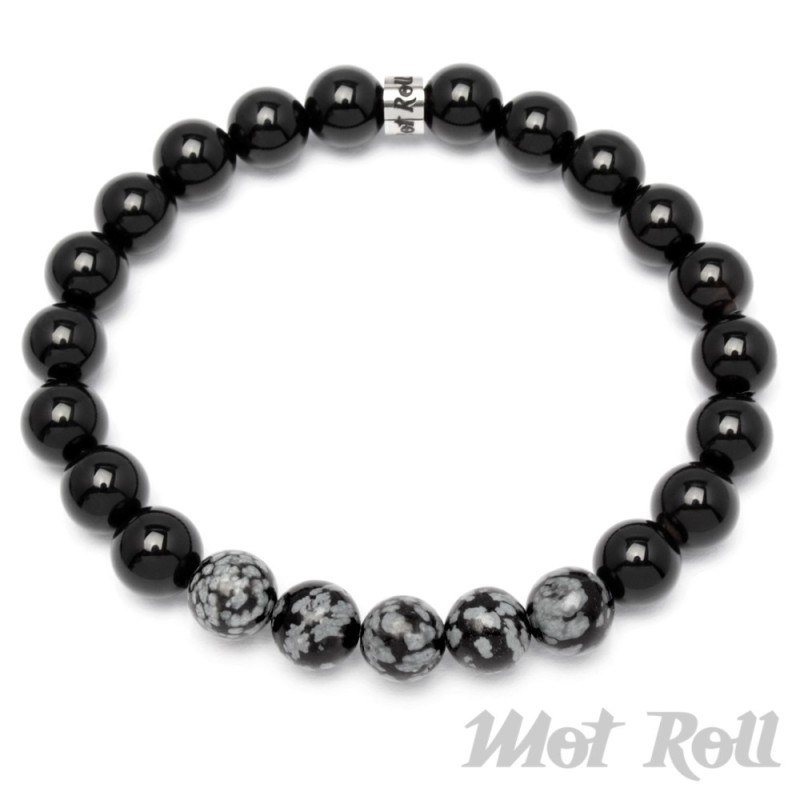 Mot Roll Perlen Armband schwarz grau gesprenkelt Jaspis Achat Edelstein Herren Menbeads