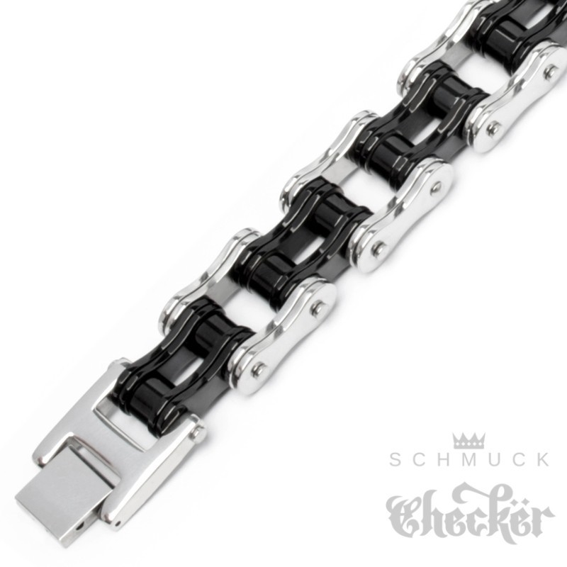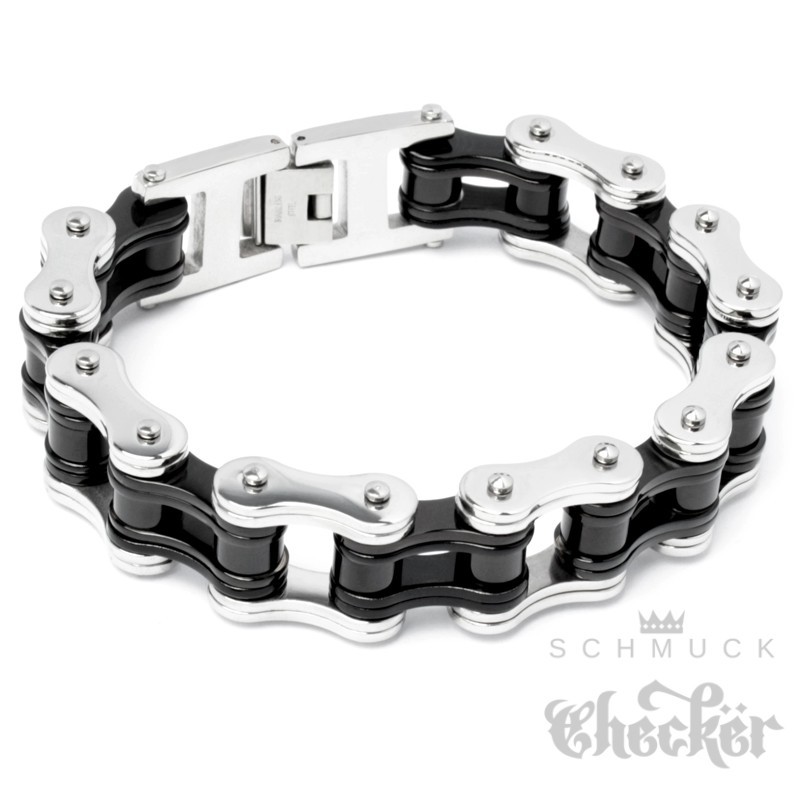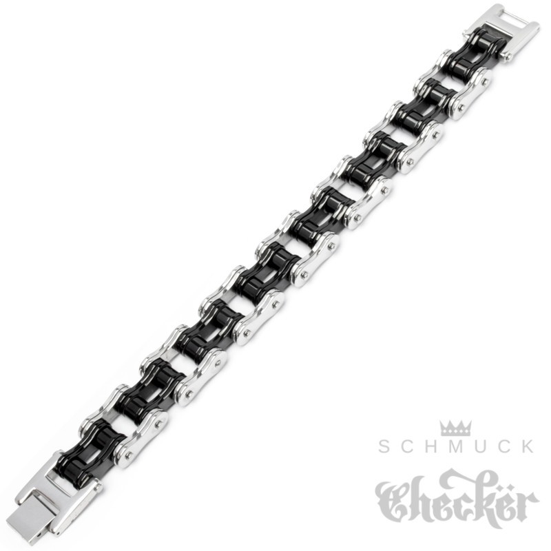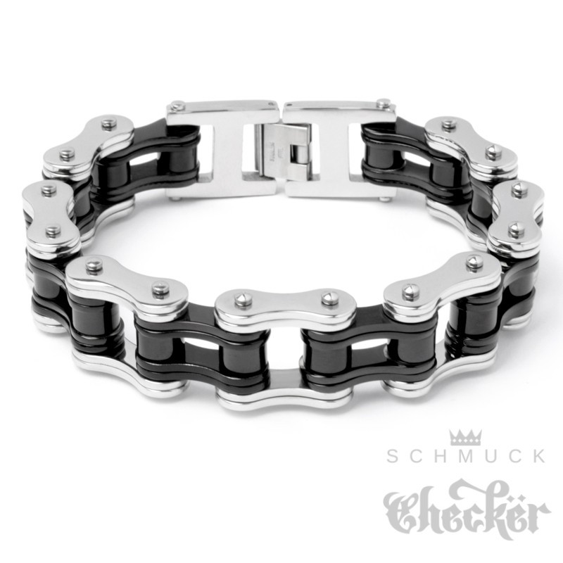 Motorradkette silber-schwarz Biker Armkette aus Edelstahl massives Bikerarmband