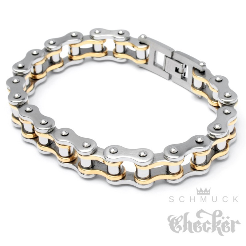 Motorradketten-Armband in silber & gold aus Edelstahl Biker-Armband Fahrradkette