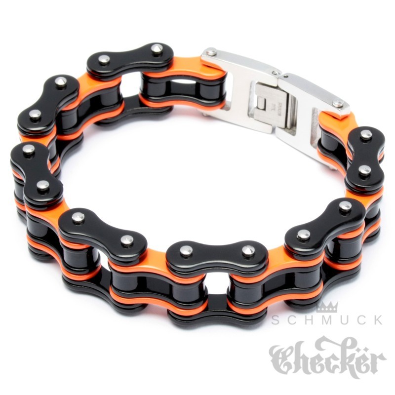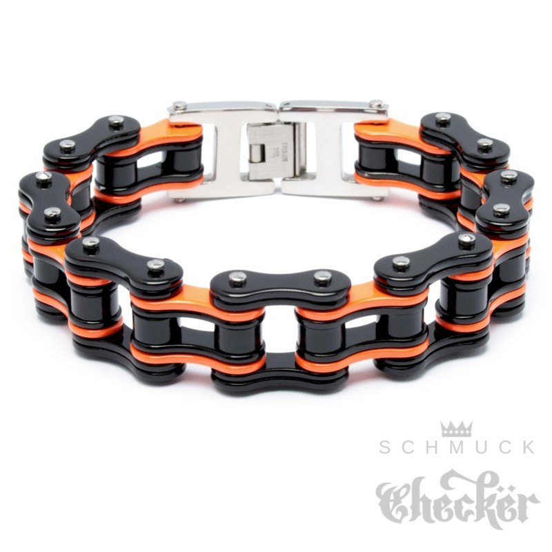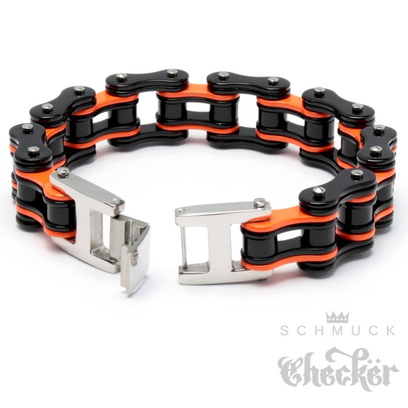 Motorradketten-Armband Schwarz Orange Biker-Armband aus Edelstahl Rocker Geschenk