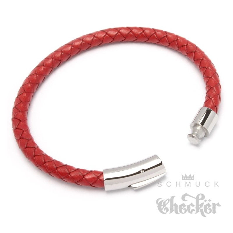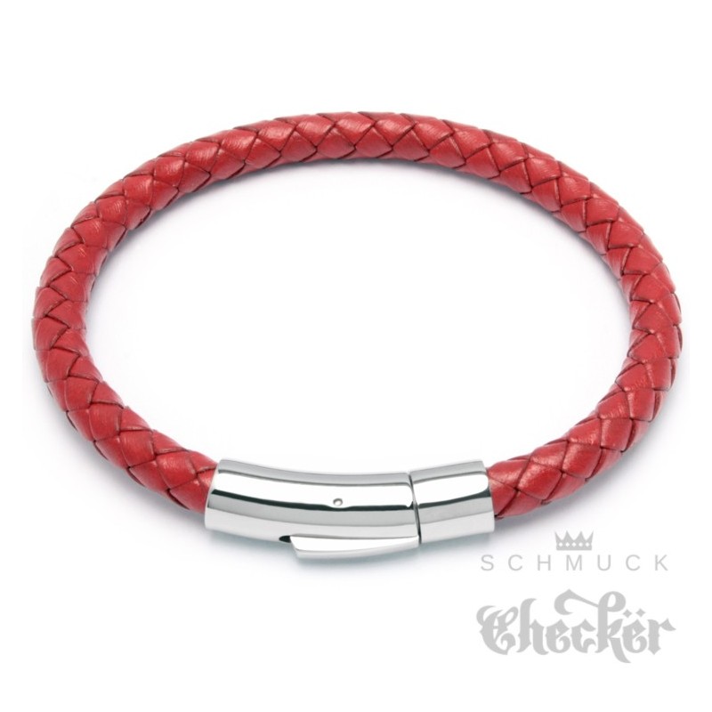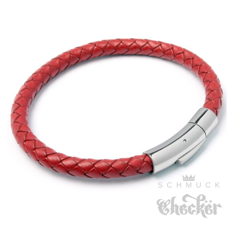 Rotes Armband aus echtem Leder mit Edelstahl Verschluss geflochten 6mmØ