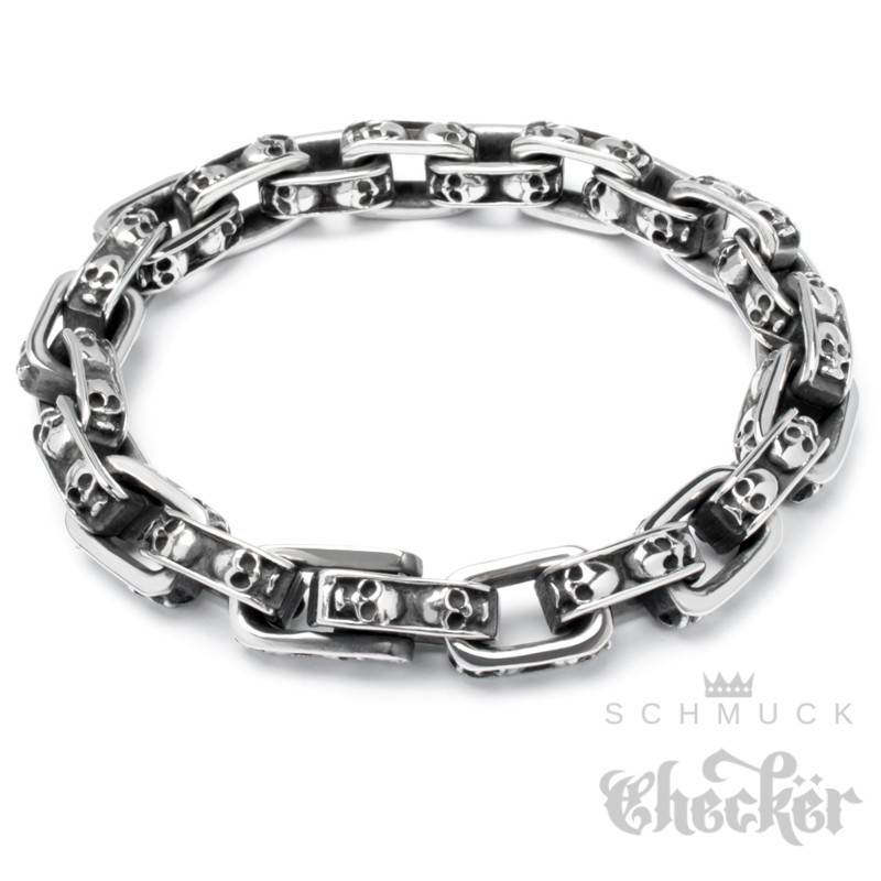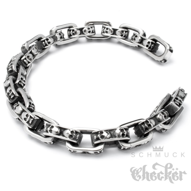 Totenkopfarmband aus massivem 316L Edelstahl Herren Biker Armkette silber Skulls