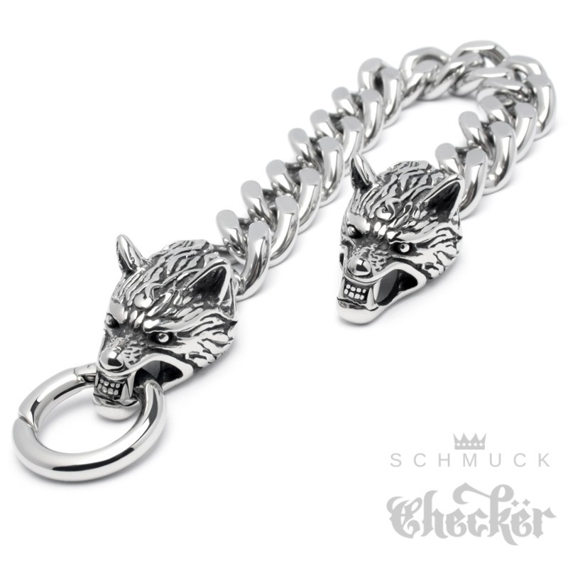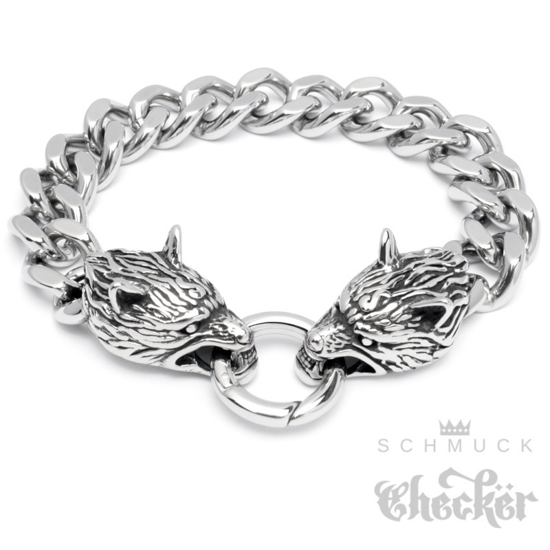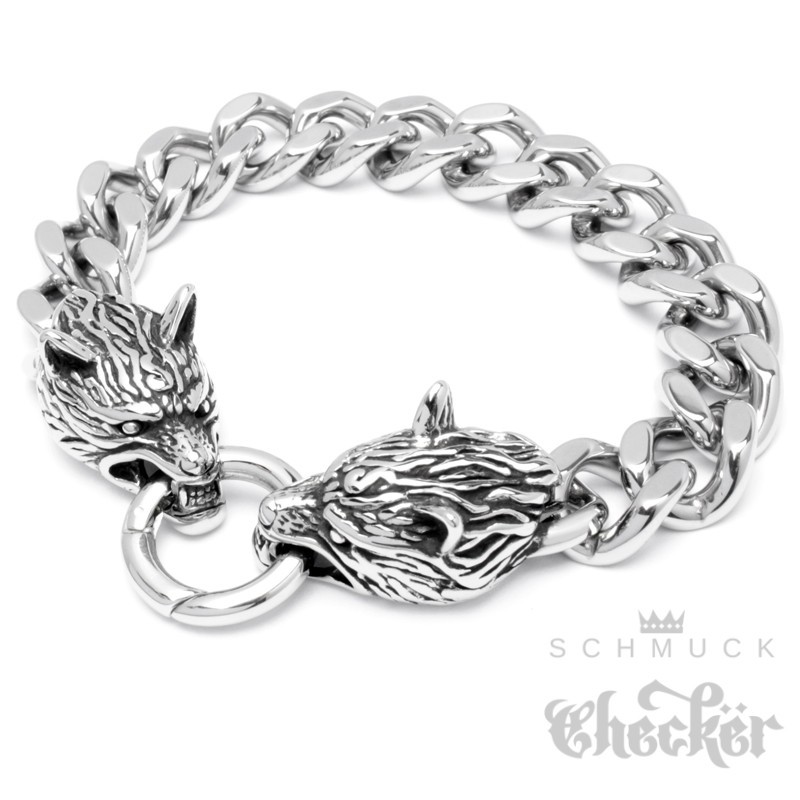 Wolf Panzerarmband mit Ringverschluss aus Edelstahl silber Wölfe Männer-Armband