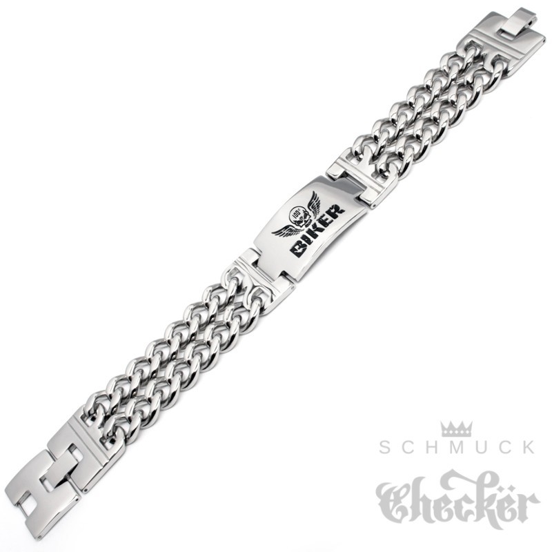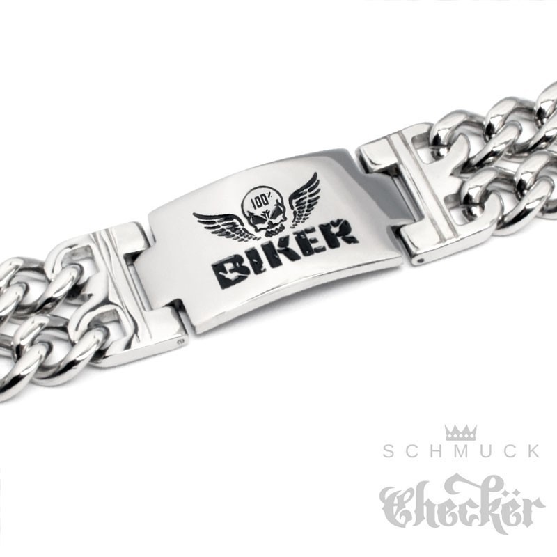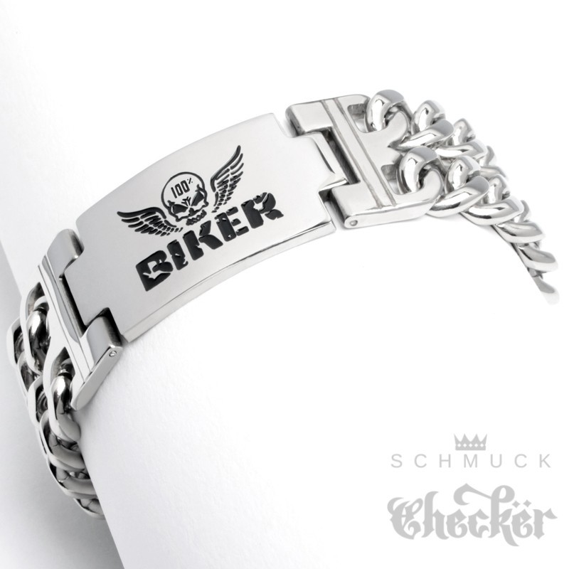 XL Armband 100% BIKER mit Totenkopf & Flügel Männer Herren Panzerkette Edelstahl Armkette