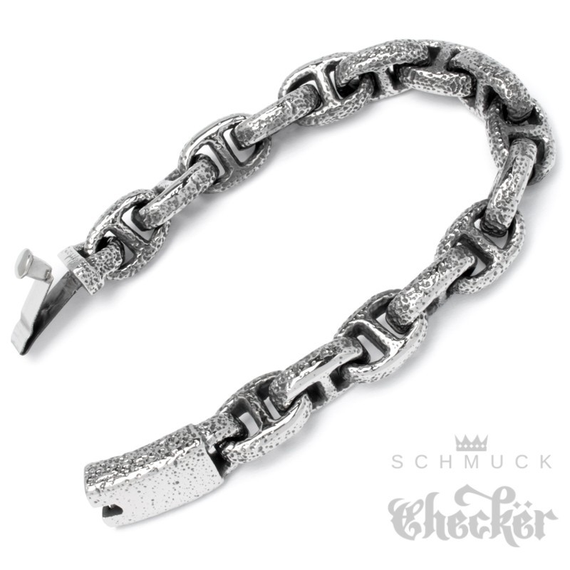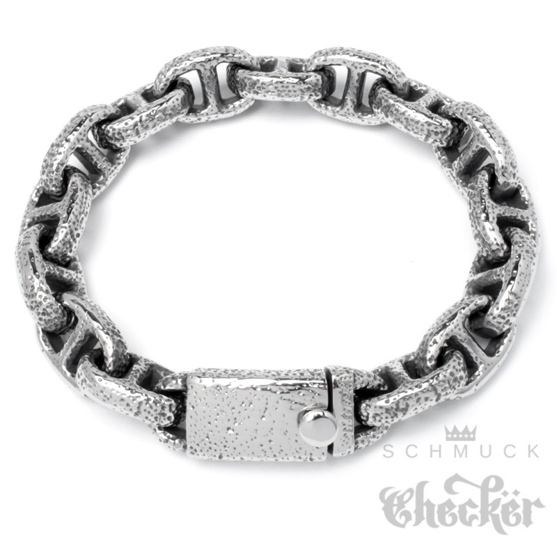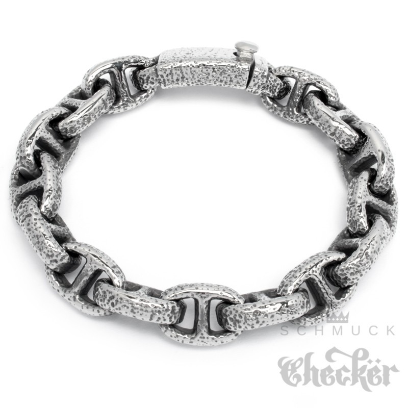 - Durch die Dellenstruktur bekommt das Edelstahlarmband ein einzigartiges, rustikales und sehr maskulines Aussehen, wie in Handarbeit aus Stein gemeißelt.