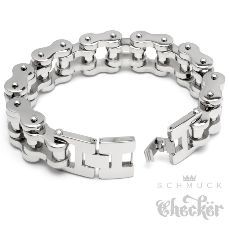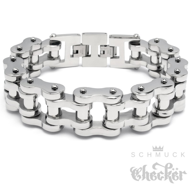 XXL Armband große Motorradkette mit Verlängerung massive Armkette aus Edelstahl silber