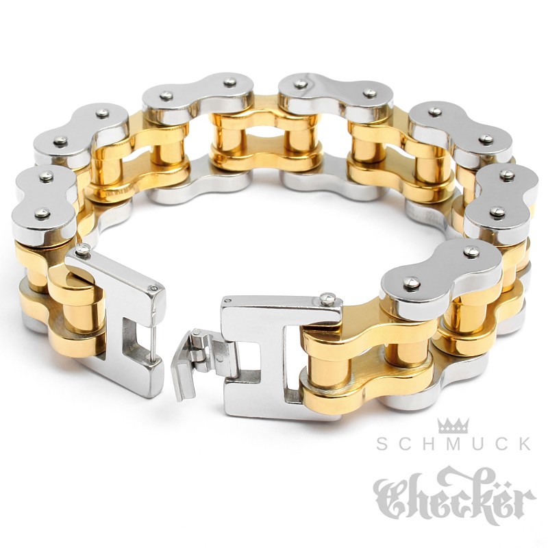XXL Biker Armband schwere Motorradkette aus Edelstahl silber-gold Rockerschmuck