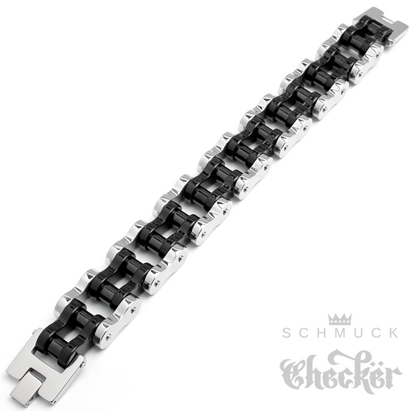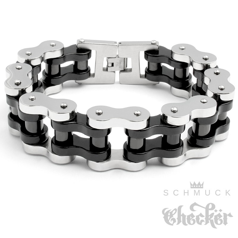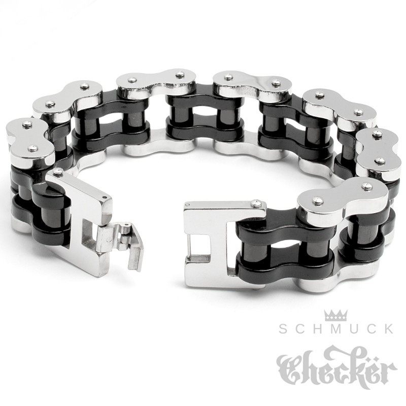 XXL Biker Armband schwere Motorradkette aus Edelstahl silber-schwarz Rockerschmuck