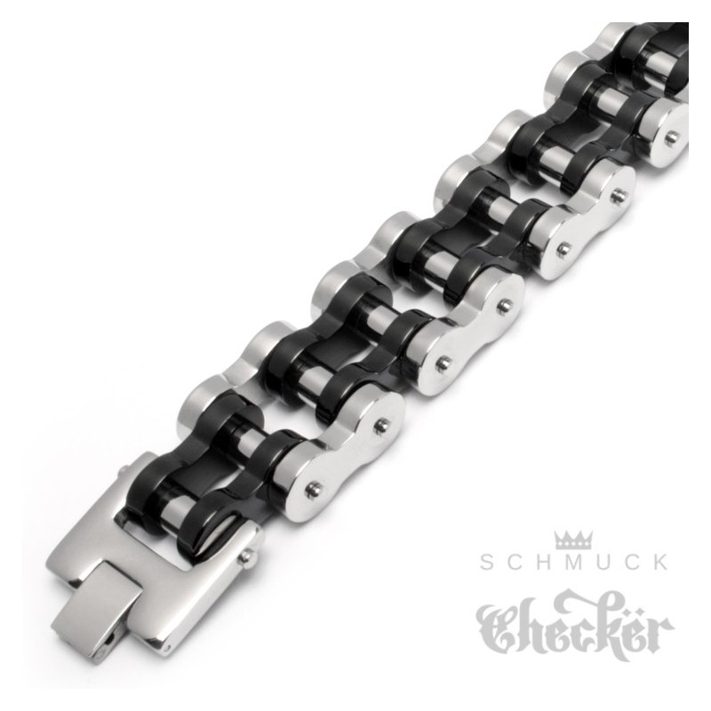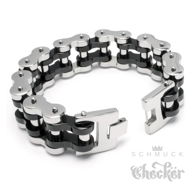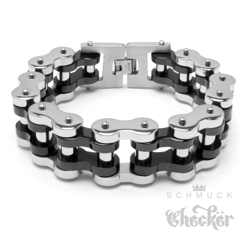 XXL Motorradketten-Armband aus Edelstahl Bikerschmuck Armkette silber schwarz massiv