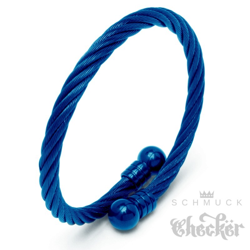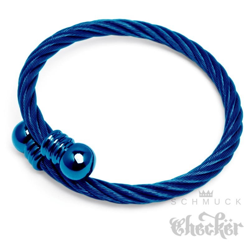 Blauer Stahlseil Armreif aus flexiblem Edelstahl Damen Herren Geschenk