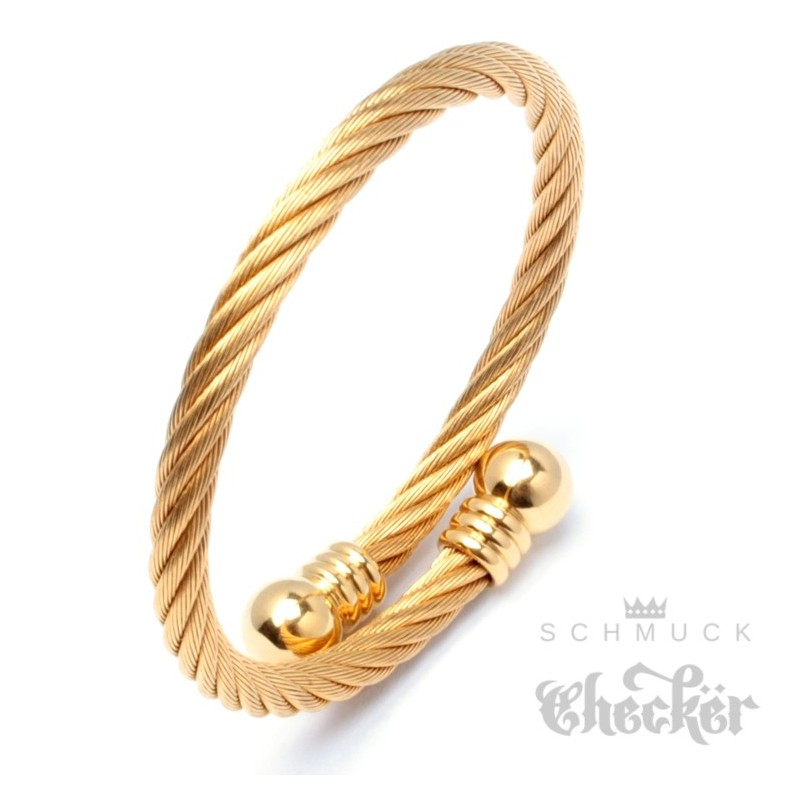 Flexibler Stahlseil Armreif aus Edelstahl gold vergoldet Damen Herren Geschenk