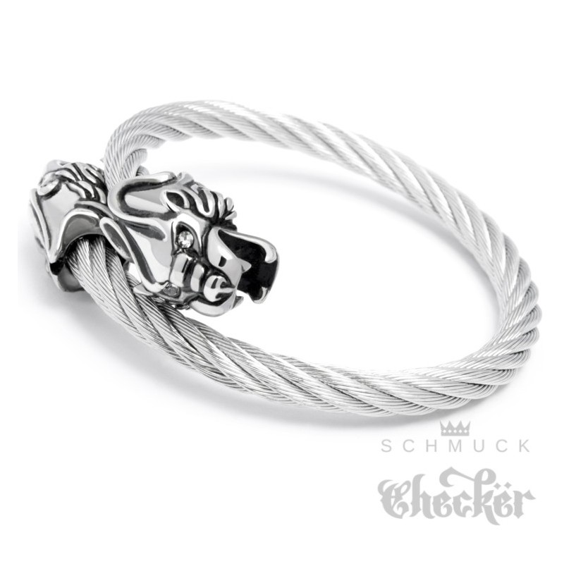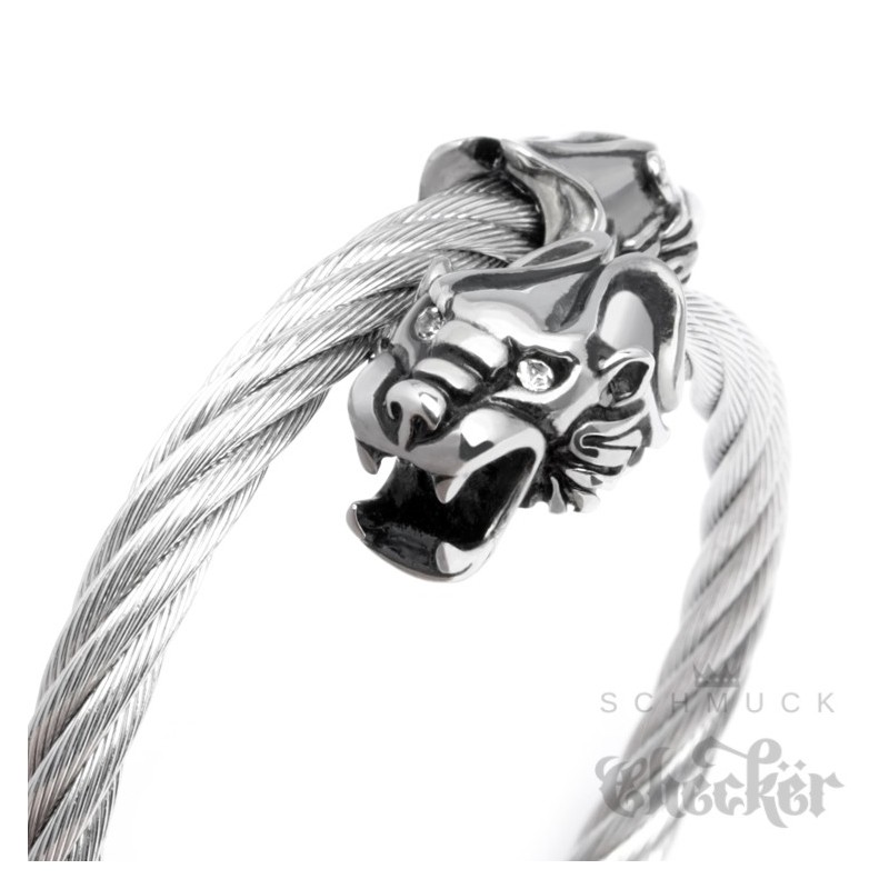 Edelstahl Armreif Herren Armband Tiger Bikerschmuck Geschenk Stahlseil flexibel