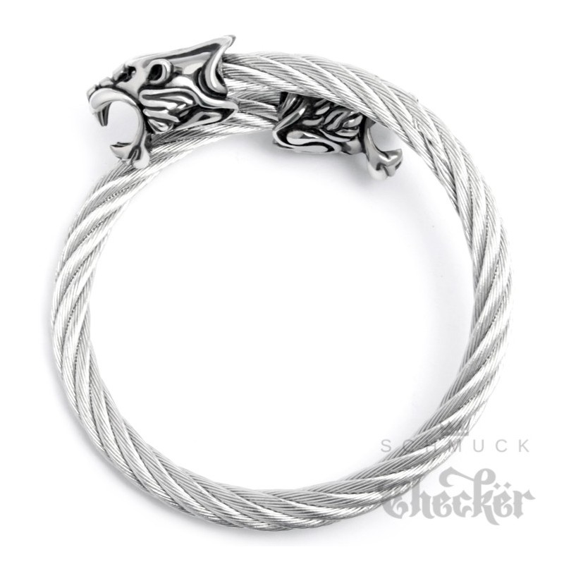 Dieser hochwertige Armreif ist das perfekte Geschenk für den Mann. Er ist aus sehr robustem und flexiblen Stahlseil gefertigt und passt sich dem Handgelenk seines Trägers an (Universalgröße). Die zwei Tiger mit aufgerissenem Maul sind aus 316L Edelstahl und haben hochwertige, weiße Zirkonia als Augen. Mit diesem Bikerarmband machst Du jeden Mann glücklich.