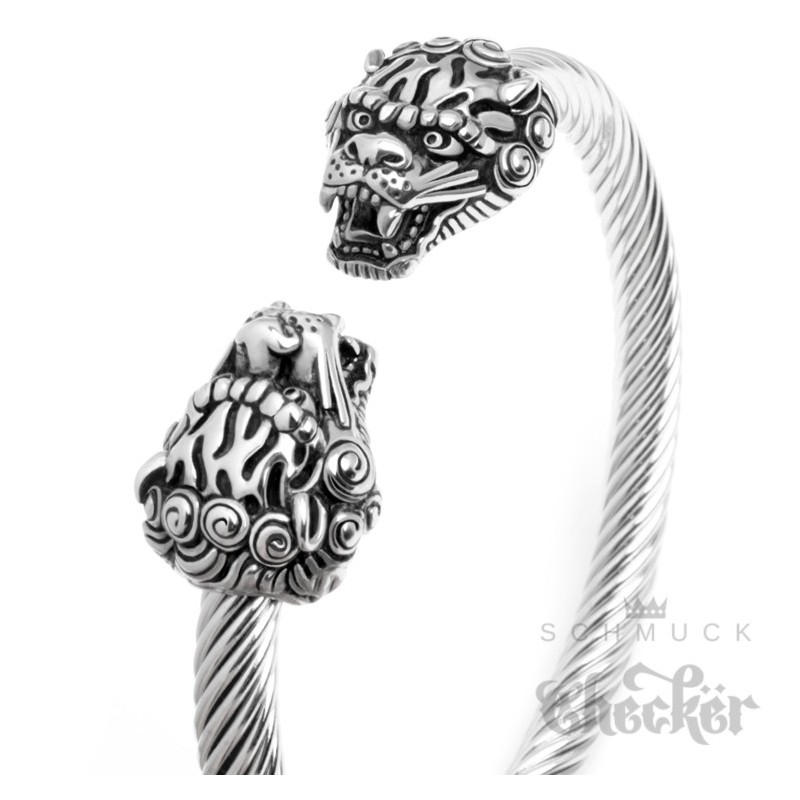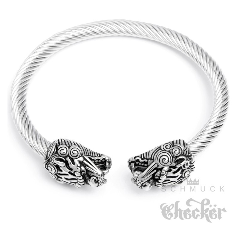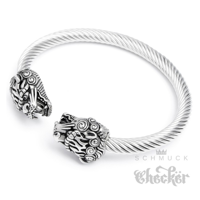 Edelstahl Herren Armreif Armspange Armband felxibel silber Drache Drachenkopf