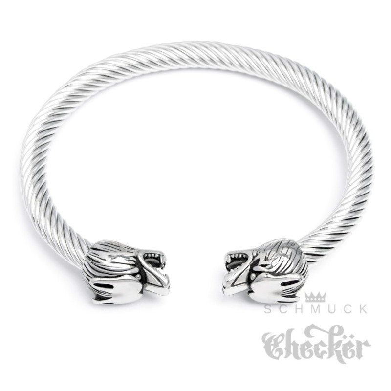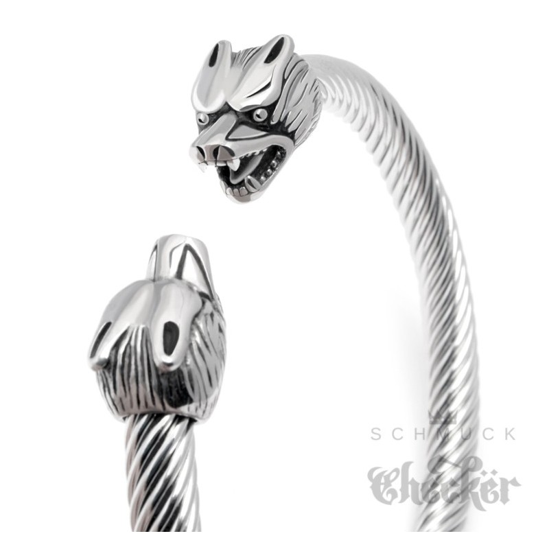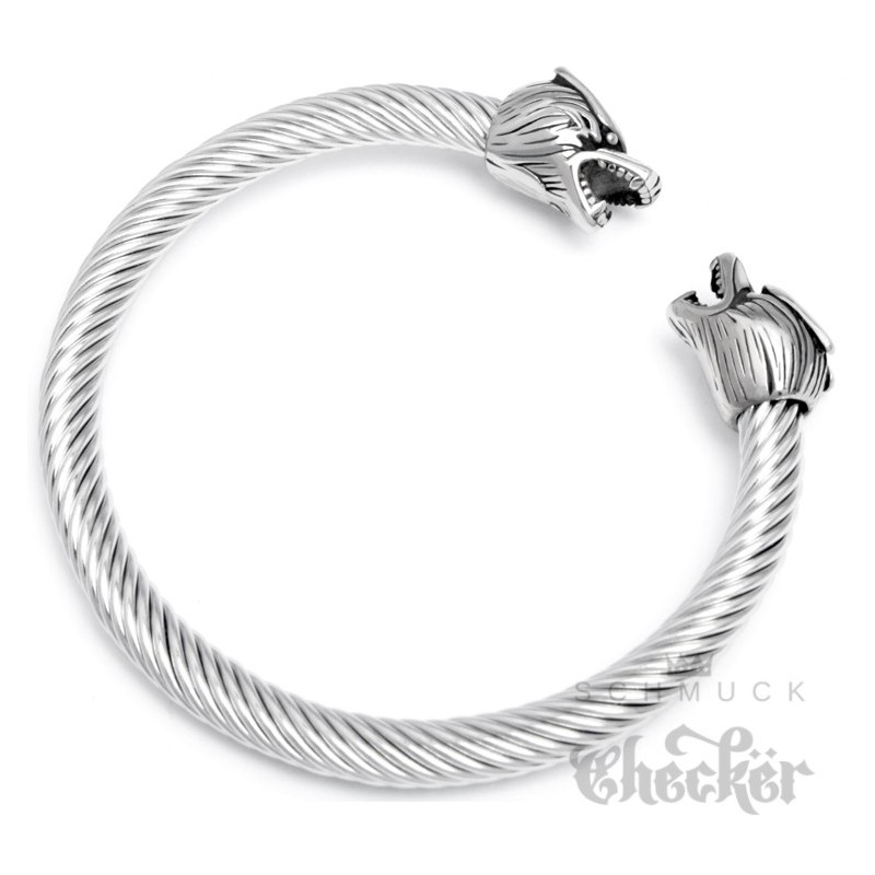 Edelstahl Herren Armreif Armspange Armband felxibel silber Wolf Wolfskopf