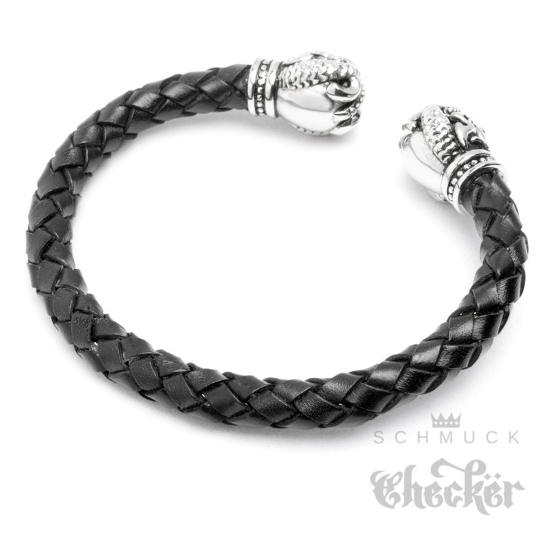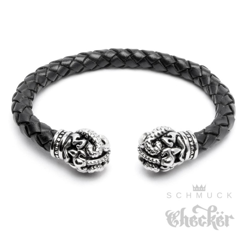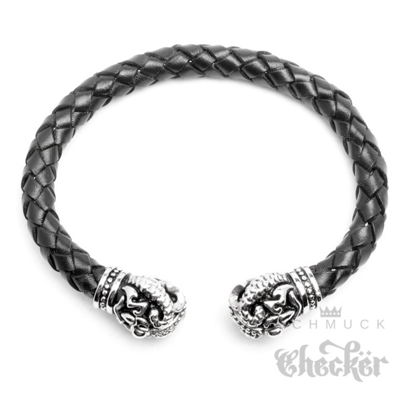 Hochwertiger Herren Armreif Echt Leder geflochten Edelstahl Knauf verziert Biker