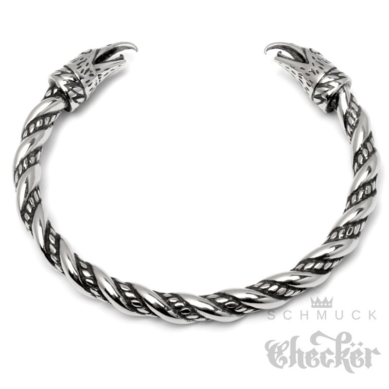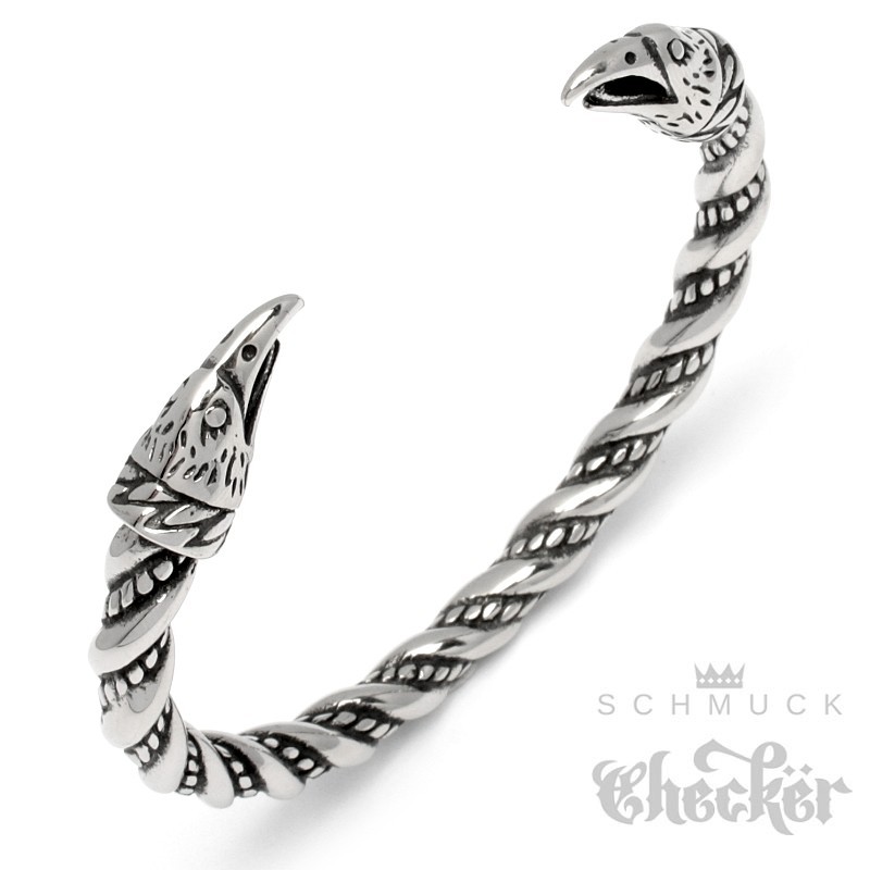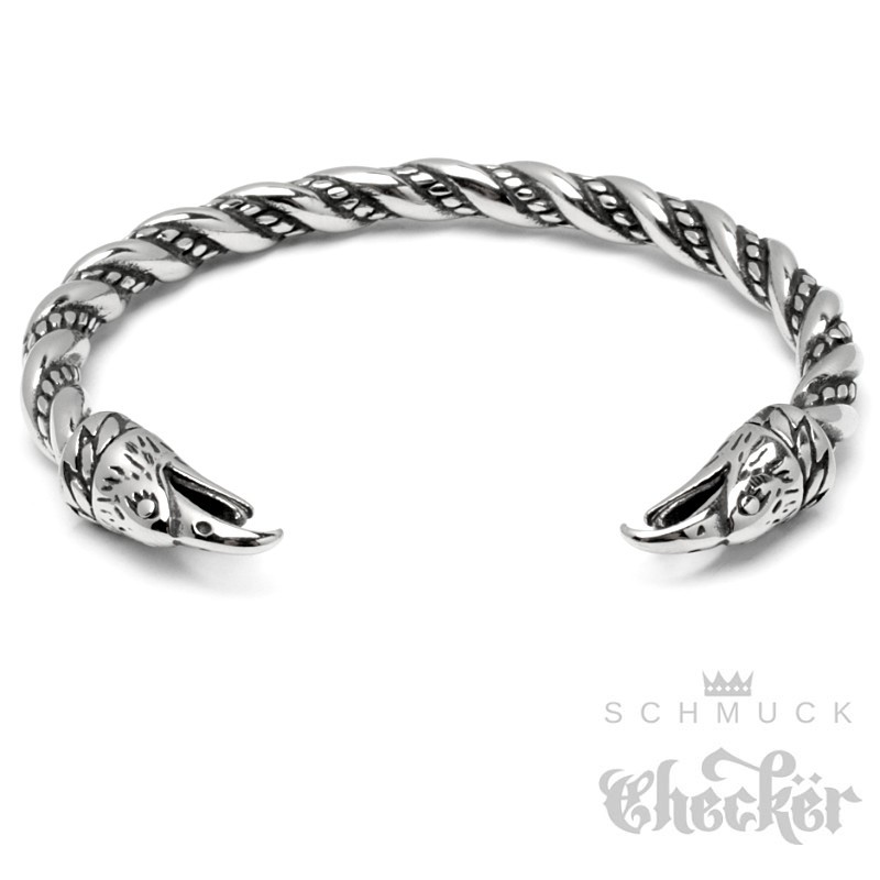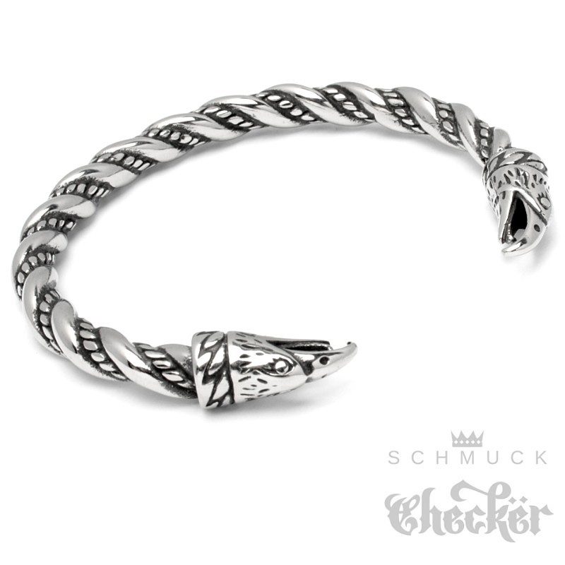 Wikinger Armreif verziert mit Vogel-Köpfen 316L Edlestahl Schmuck Männer Geschenk