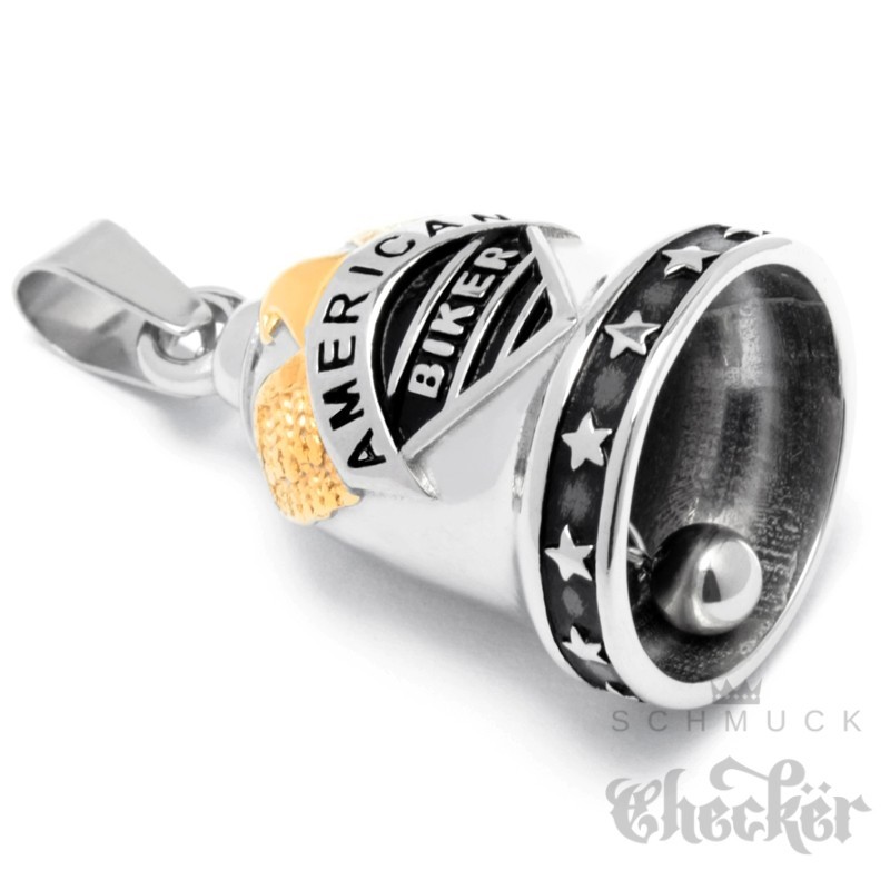 American Biker Biker-Bell aus Edelstahl in silber & gold Adler Live to Ride Glücksglocke