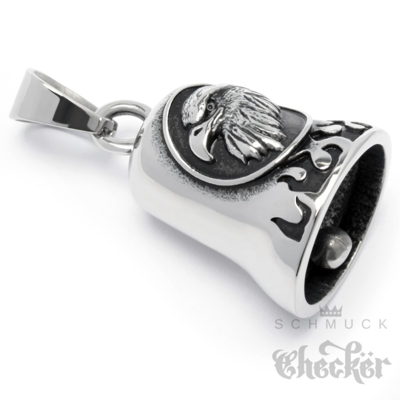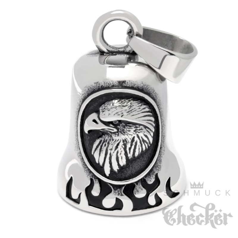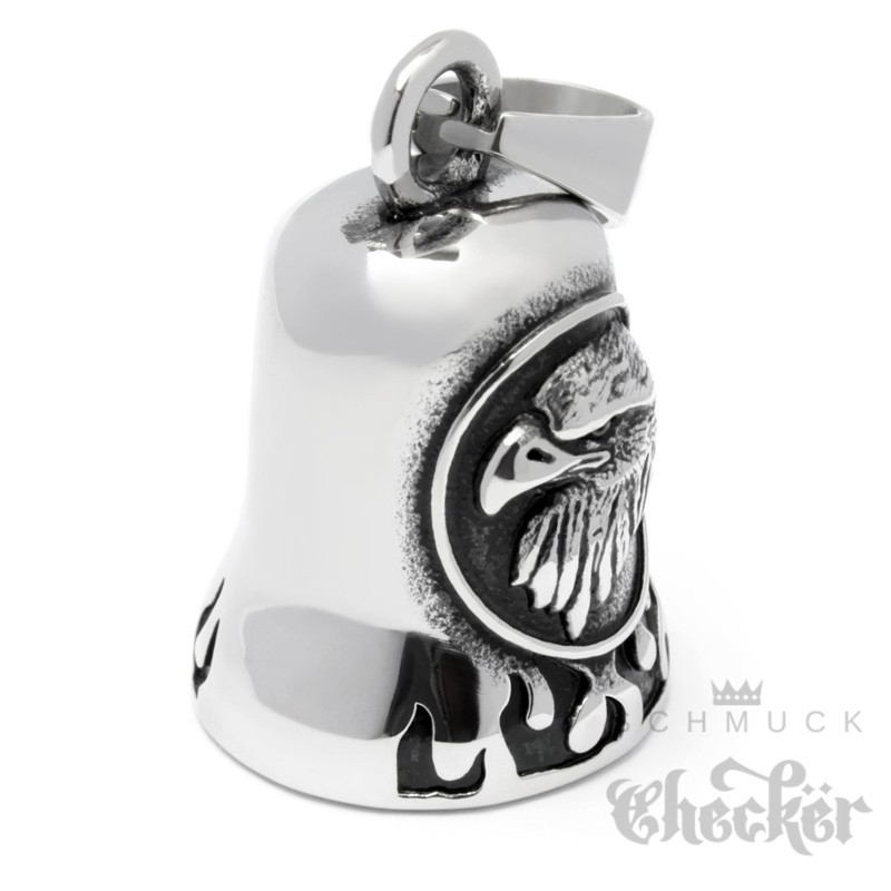 Biker-Bell mit Adler-Kopf aus Edelstahl Motorradfahrer Glücksbringer Guardian Bell