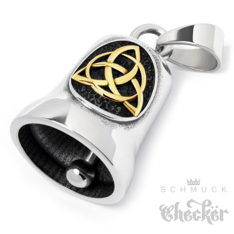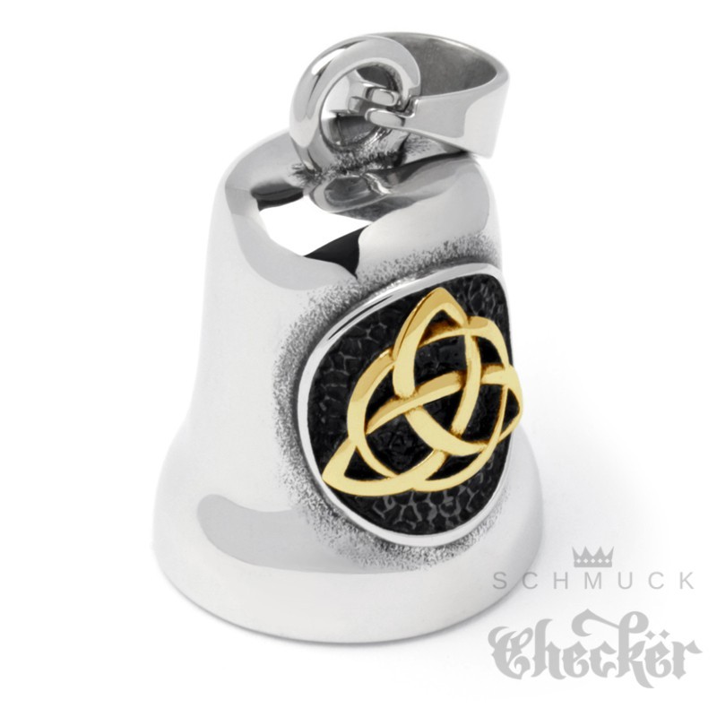 Bikerbell mit Triqueta aus Edelstahl silber gold poliert Motorrad Glücksbringer